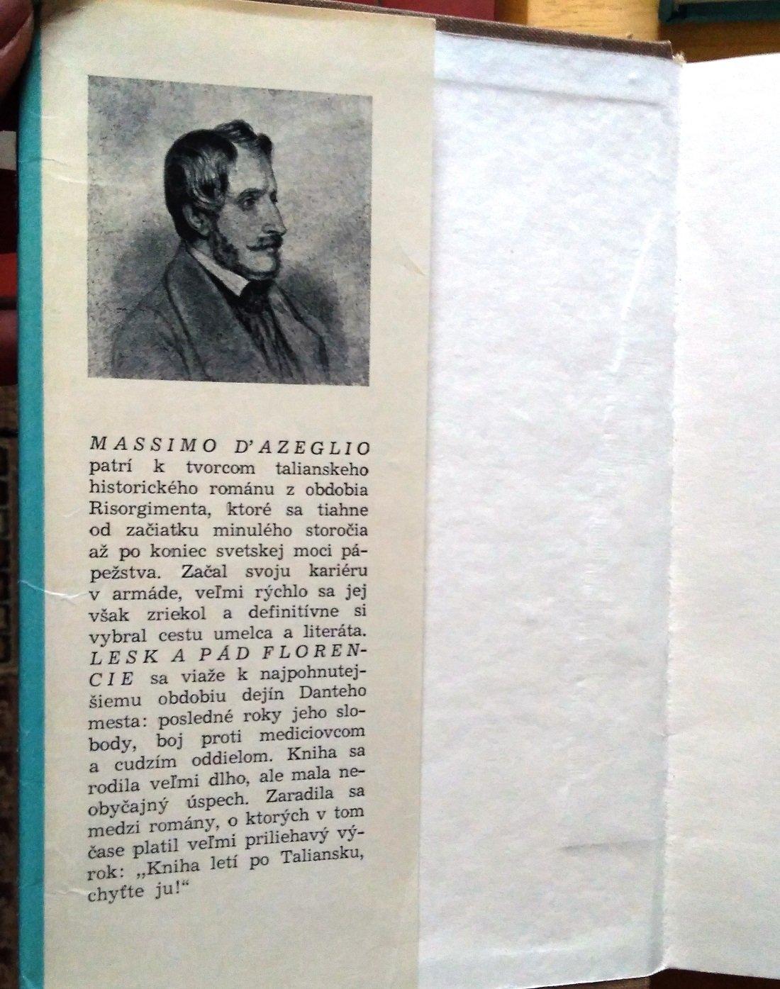 Lesk a pád Florencie , Massimo D Azeglio , Slovenský spisovateľ , 1968 , tvrdá väzba 575 strán , 14 x 20 cm , 700 g - 4,50 €