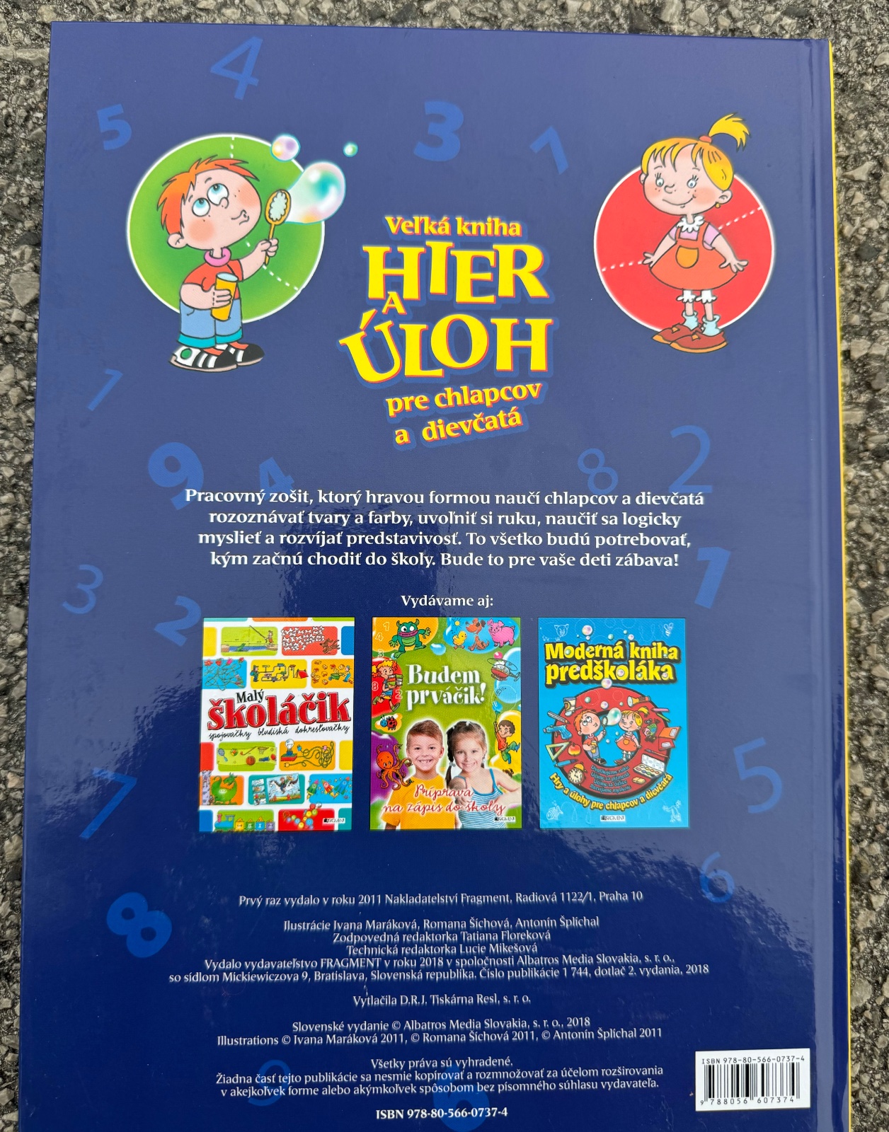 Pracovný zošit, ktorý hravou formou naučí chlapcov a dievčatá rozoznávať tvary a farby, uvoľniť si ruku, naučiť sa logicky myslieť a rozvíjať predstavivosť. To všetko budú potrebovať, kým začnú chodiť do školy. Bude to pre vaše deti zábava!