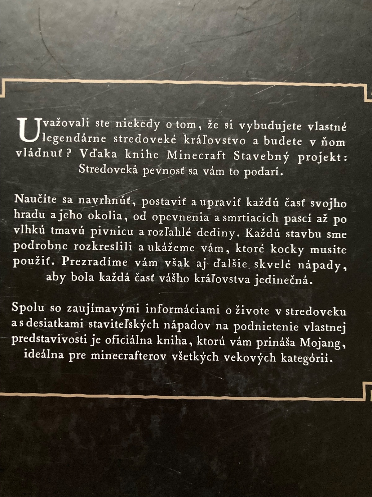 📌Každú stavbu sme podrobne rozkreslili a ukážeme vám, ktoré kocky musíte použiť. Prezradíme vám však aj ďalšie skvelé nápady, aby bola každá časť vášho kráľovstva jedinečná. Spolu so zaujímavými informáciami o živote v stredoveku a s desiatkami staviteľských nápadov na podnietenie vlastnej predstavivosti je oficiálna kniha, ktorú vám prináša Mojang, ideálna pre minecrafterov všetkých vekových kategórií.