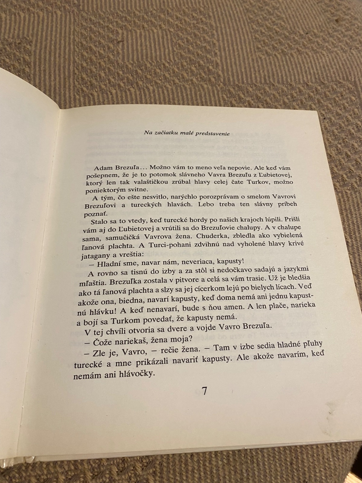 Podivuhodné príbehy Adama Brezuľu. Adam Brezuľa ... možno vám to meno veľa nepovie. Ale keď vám pošepnem, že je to potomok slávneho Vavra Brezuľu z Ľubietovej, ktorý len tak valaštičkou zrúbal celej čate Turkov, možno vám poniektorým svitne... A tým, čo ešte nesvitlo, narýchlo porozprávam o smelom Vavrovi Brezuľovi a tureckých hlavách. Lebo treba ten slávny príbeh poznať.