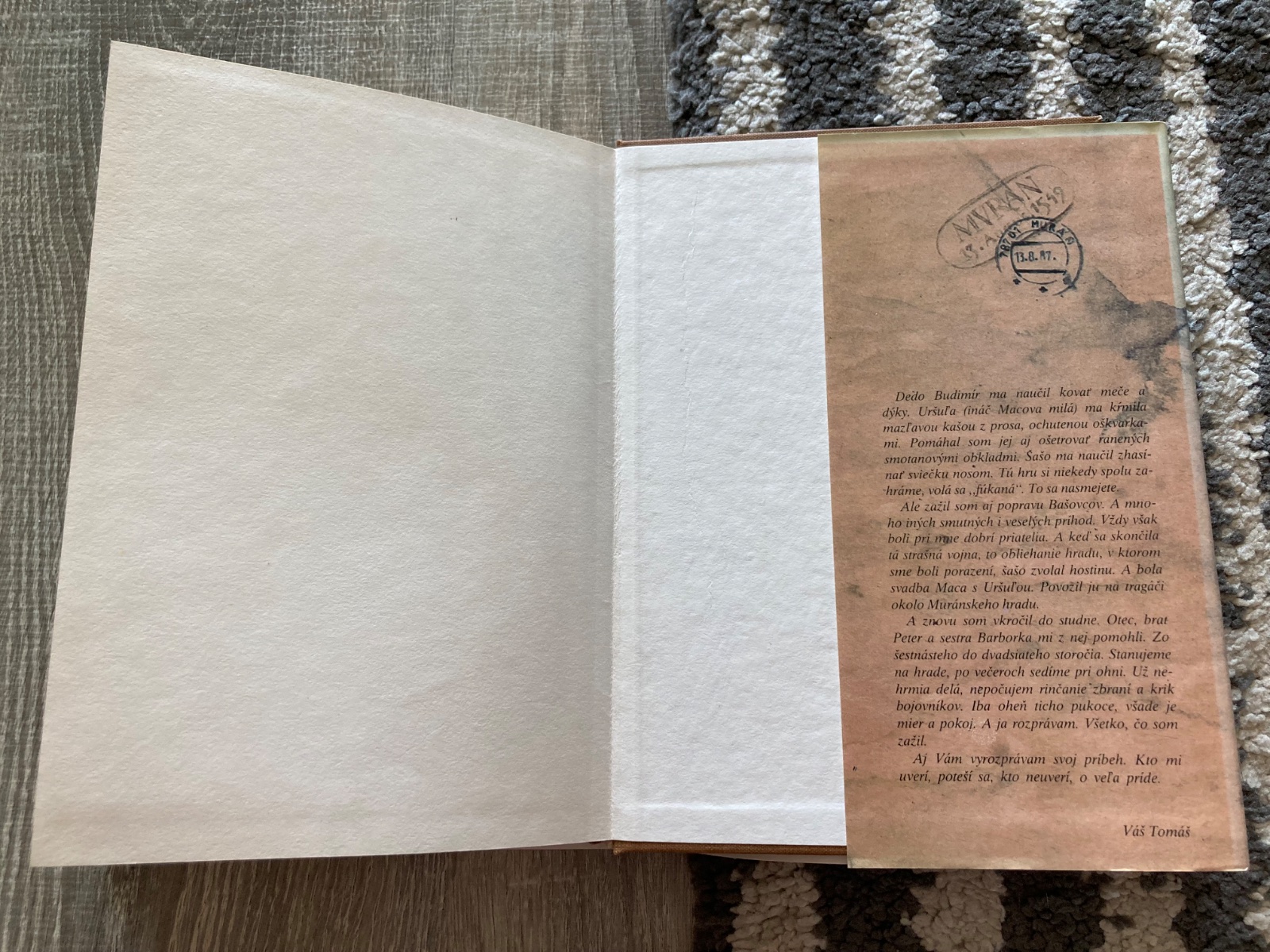 📌Úspešný historicko-dobrodružný román s prvkami sci-fi. Dobrodružný príbeh všetečného školáka, ktorý pri čistení záhadnej starej studne na hrade Muráň spustí tajuplný mechanizmus časovej slučky, nás zavedie do roku 1549, keď hrad Muráň, peleš lúpežných rytierov Bašovcov, dobývajú španielski žoldnieri. Tomáš sa ocitá uprostred vojnového virvaru, zažije dobrodružstvá, pri ktorých doslova krv tuhne v žilách....