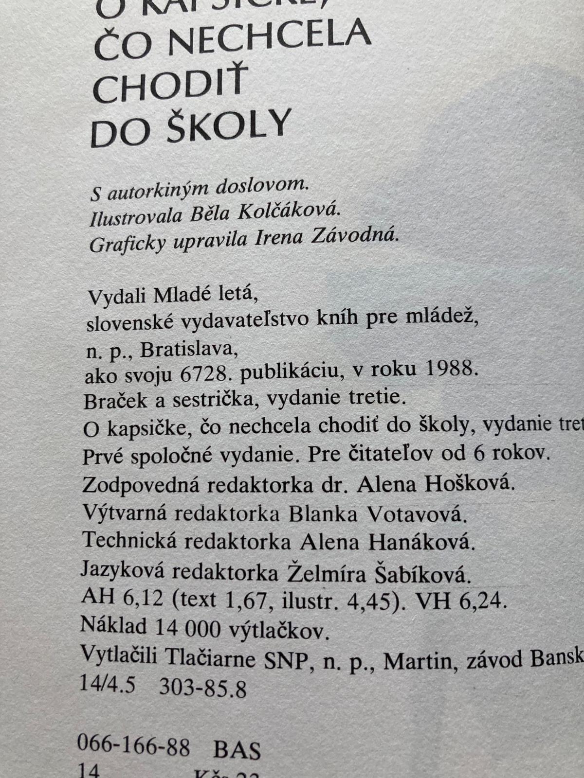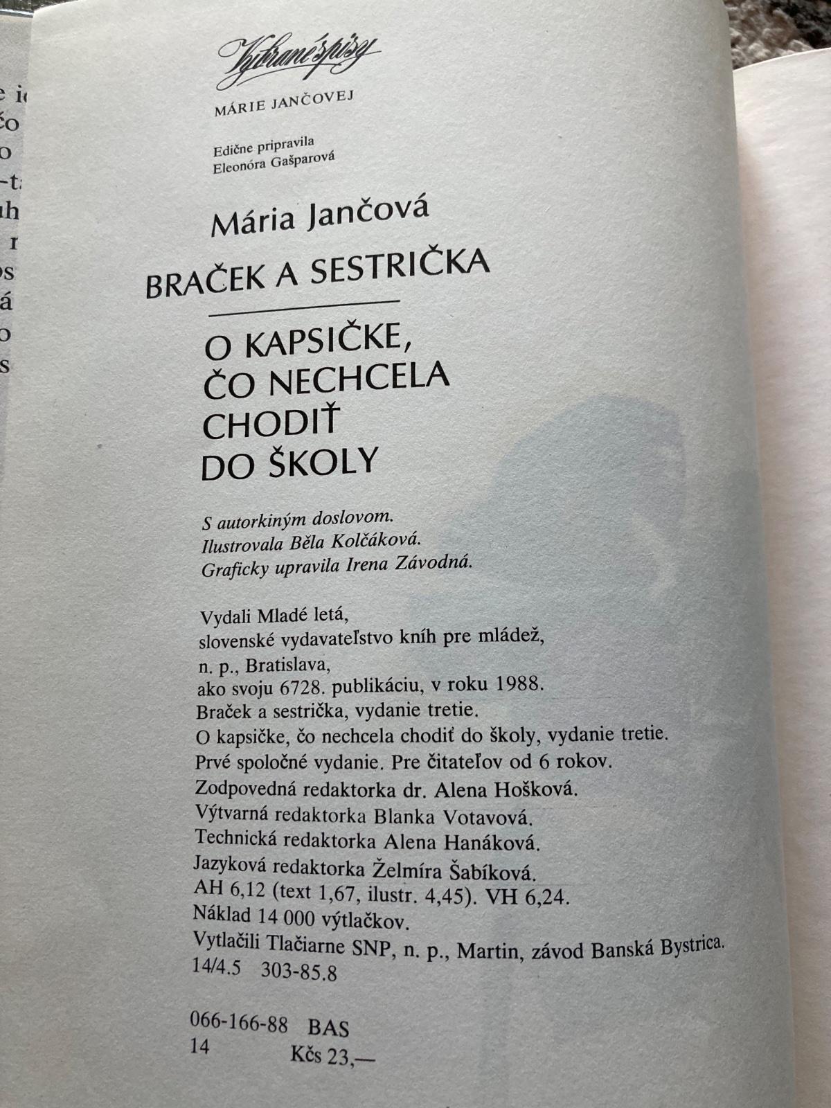 Dve knižočky v jednom vydaní: Braček a sestrička a O kapsičke, čo nechcela chodiť do školy...