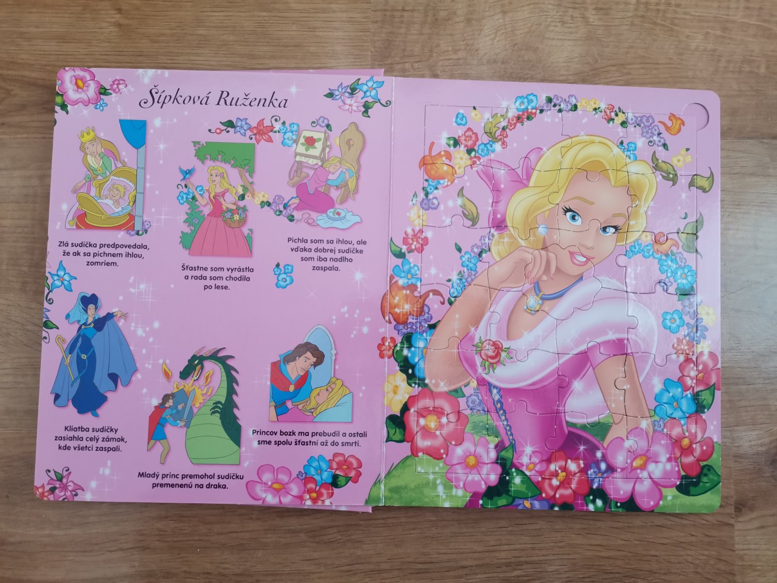 Rozprávková puzzle kniha minimálne používaná. Sú tam rozprávky o všetkých princeznách na 1.strane (snehulienka, sipova Ruženka atď).