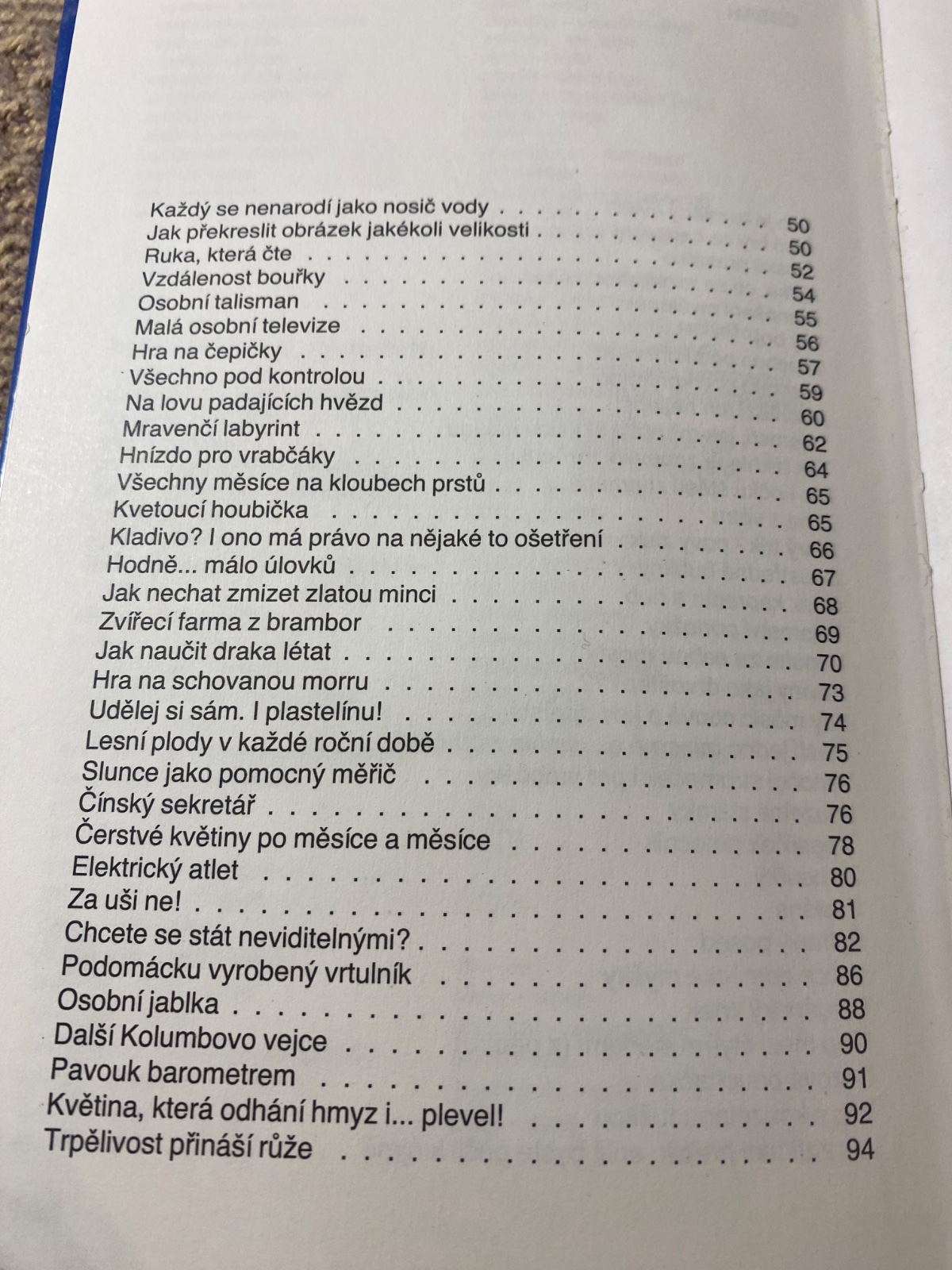 Témy: Obsahuje návody na rôzne aktivity ako napríklad prenášanie myšlienok, riešenie "záhady ponožky", správanie sa v búrke či informácie o pocite chladu z vetra.