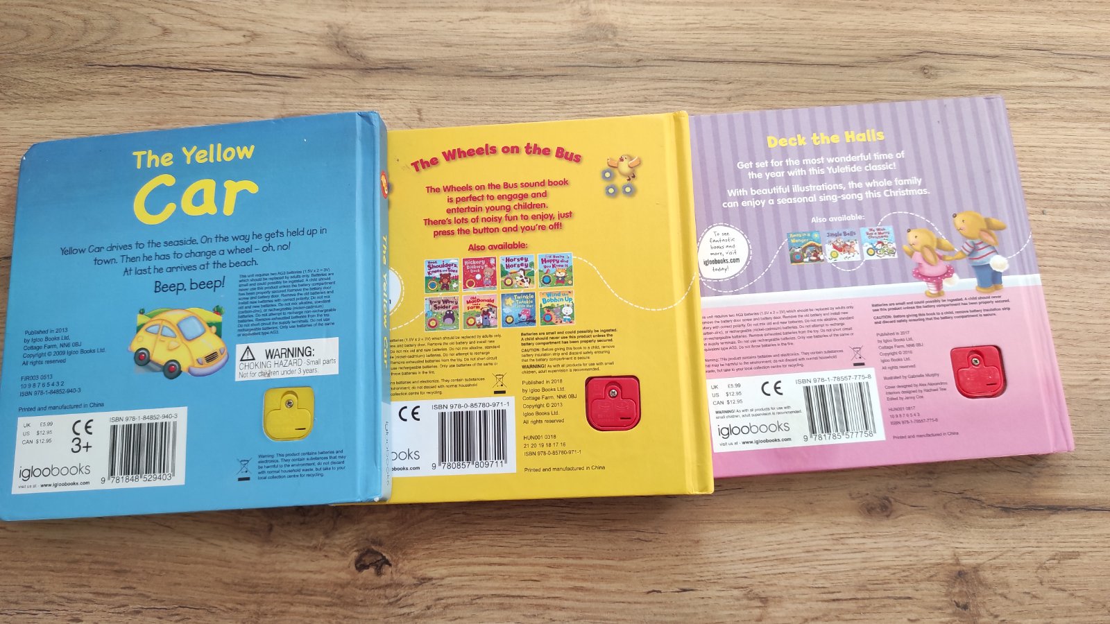 Ponúkam na predaj pekne zvukové knizky pre deti. Používané ale vo výbornom stave, bez poškodenia, akurát si treba povimienannbaterky aby bol zvuk hladný a pekne čistý. Obrázky krásne, melódie známych anglických riekaniek/pesničiek. Kupované v IE. Cena 6 eur.