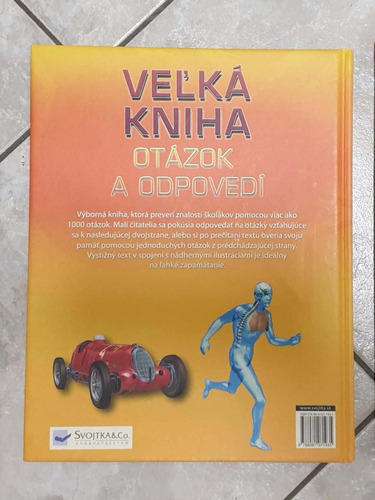 Výborná kniha, ktorá preverí znalosti školákov pomocou viac ako 1000 otázok. Malí čitatelia sa pokúsia odpovedať na otázky vzťahujúce sa k nasledujúcej dvojstrane, alebo si po prečítaní textu overia svoju pamäť pomocou jednoduchých otázok z predchádzajúcej strany. Výstižný text v spojení s nádhernými ilustráciami je ideálny na ľahké zapamätanie. Počet strán: 160 Rozmery: 281x221 Hmotnosť: 989