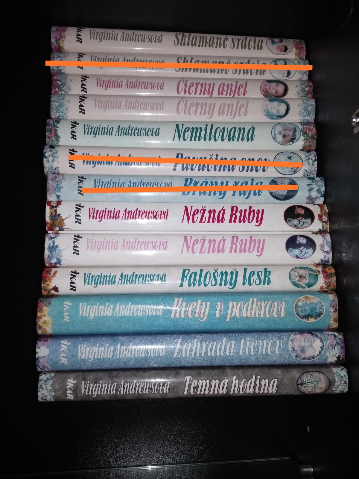 Predám knihy od Virginie Andrewsovej, kus 3.50 eur. Uz len 2 knihy mam Cierny anjel a Nezna ruby. Zasielam poštou.