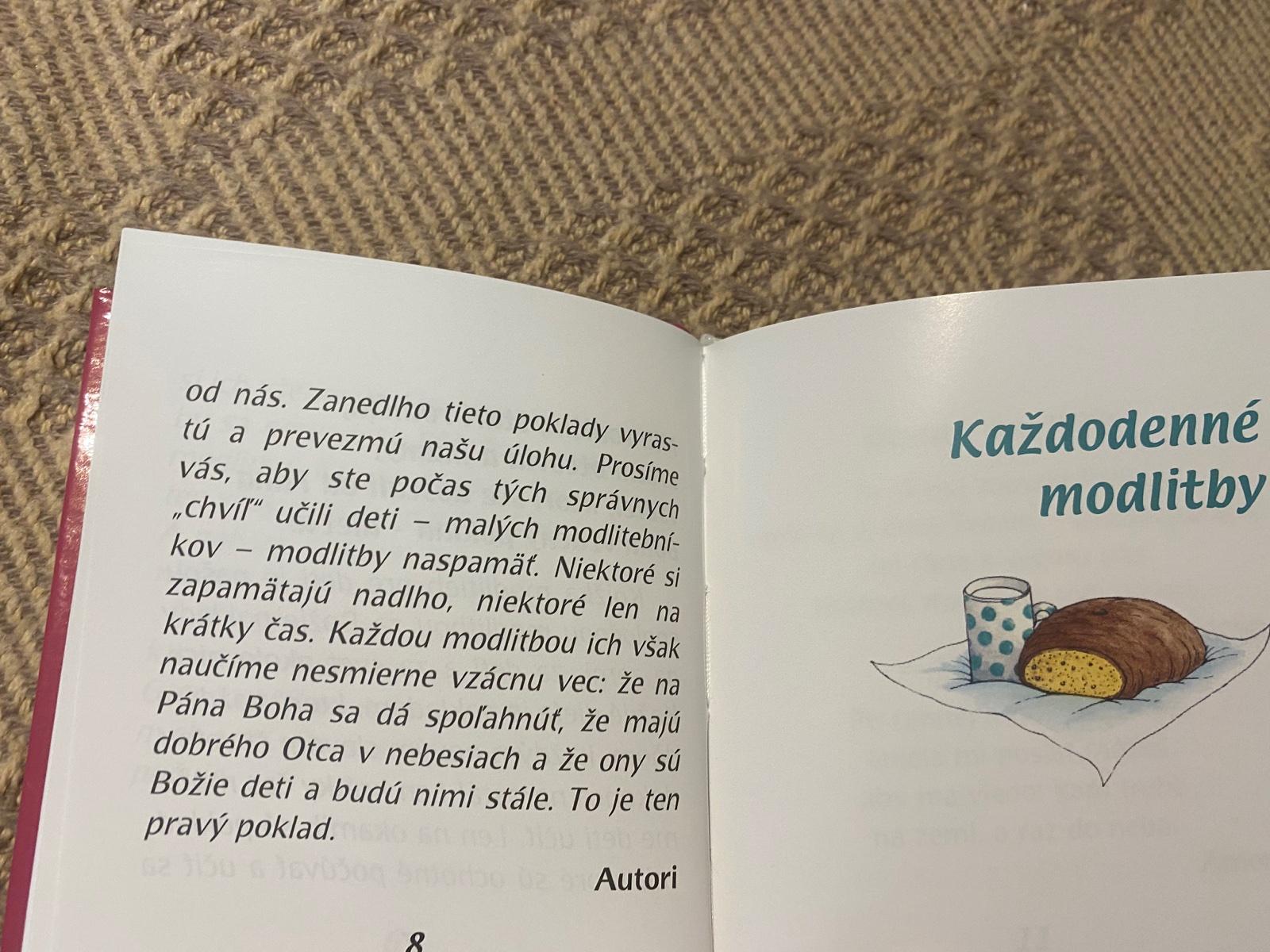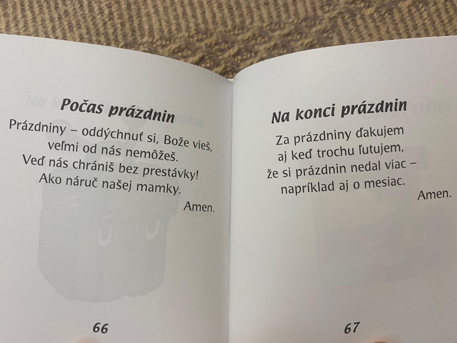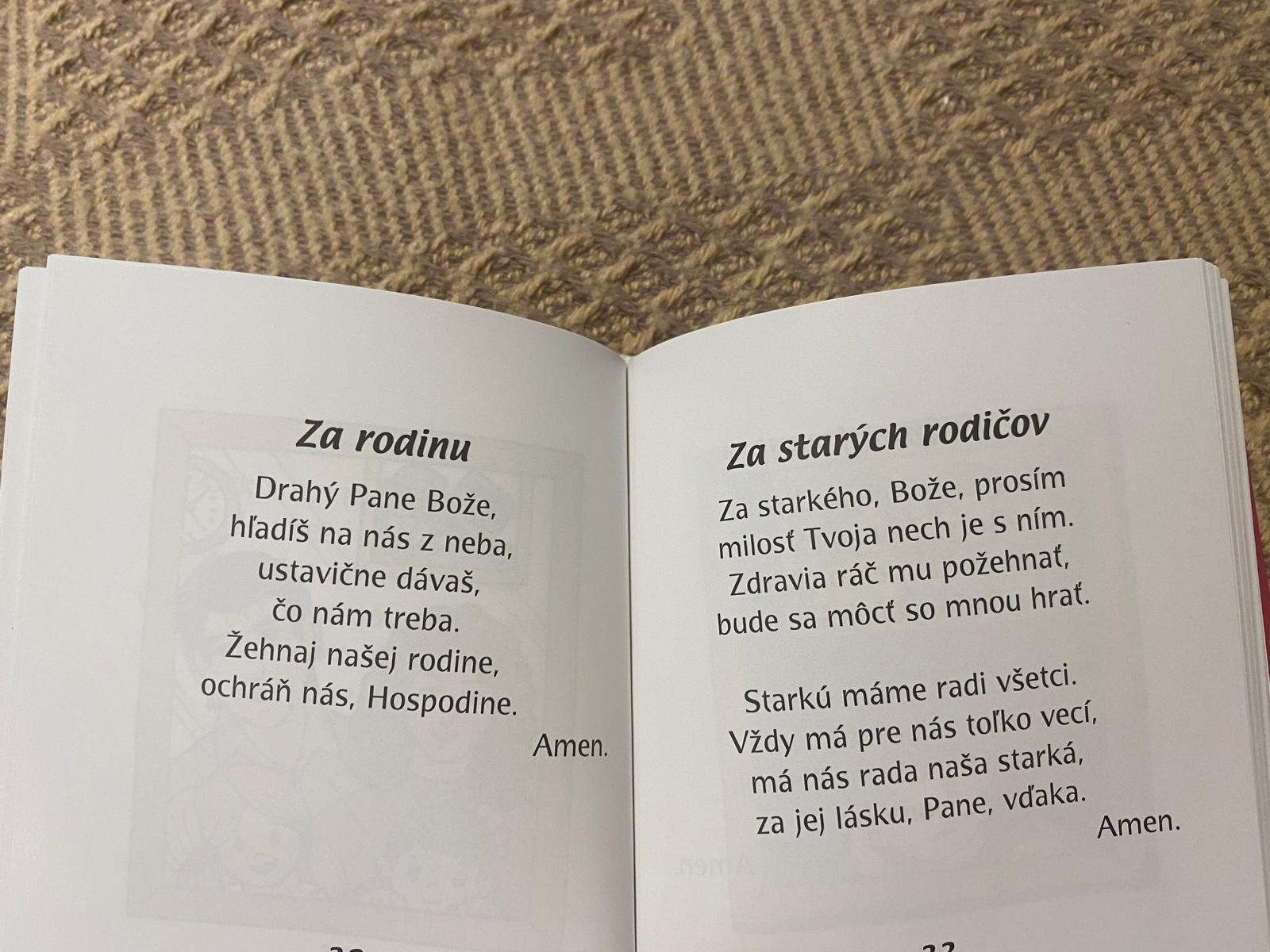Z tejto knižočky bola nadšená moja 4-ročná dcéra ako zo žiadnej a podľa obrázkov si dokáže vybrať modlitbičku, ktorá jej práve pasuje, takže okrem náboženského charakteru spĺňa aj zábavný, čo je pre deti veľmi dôležité.