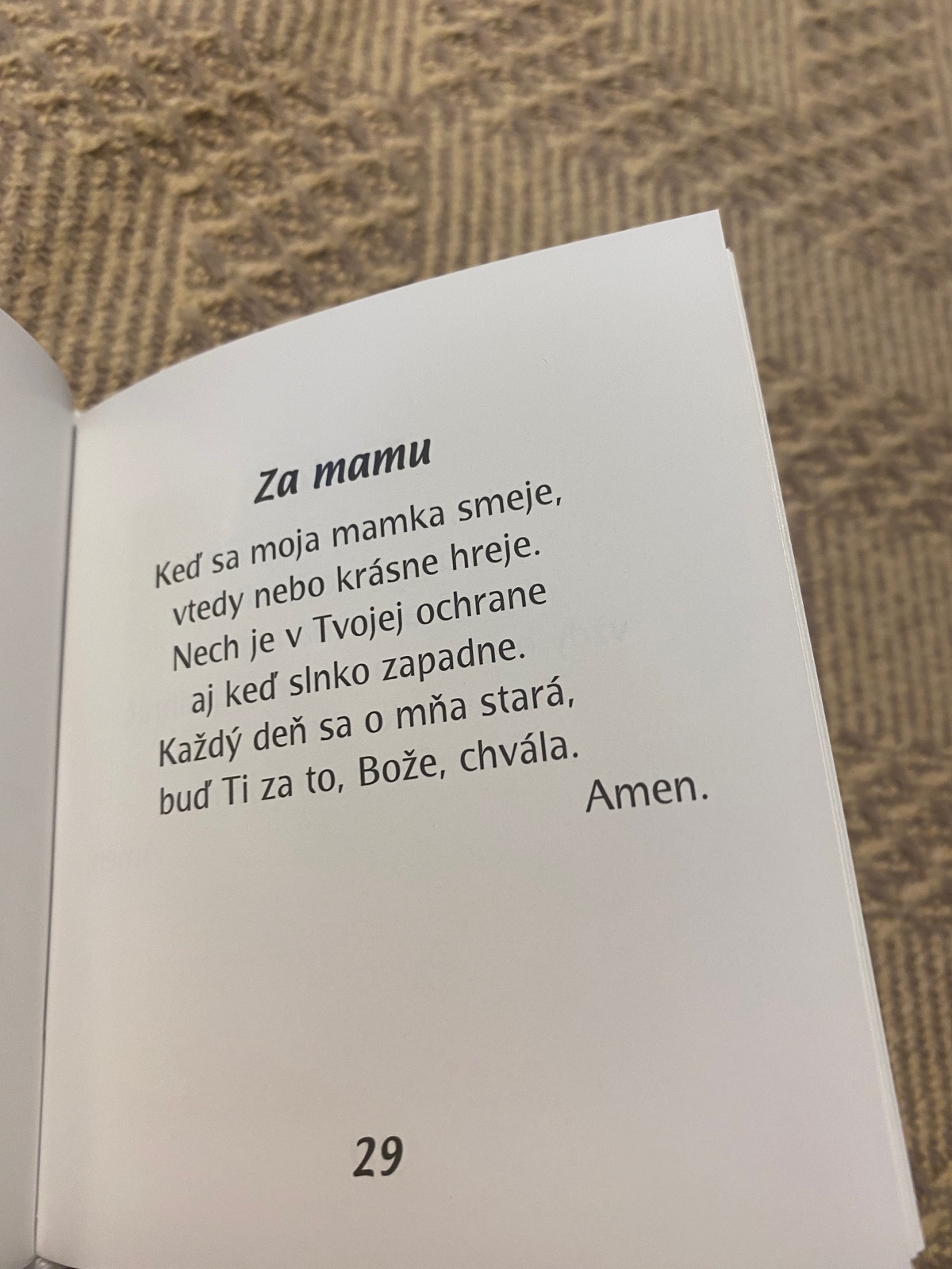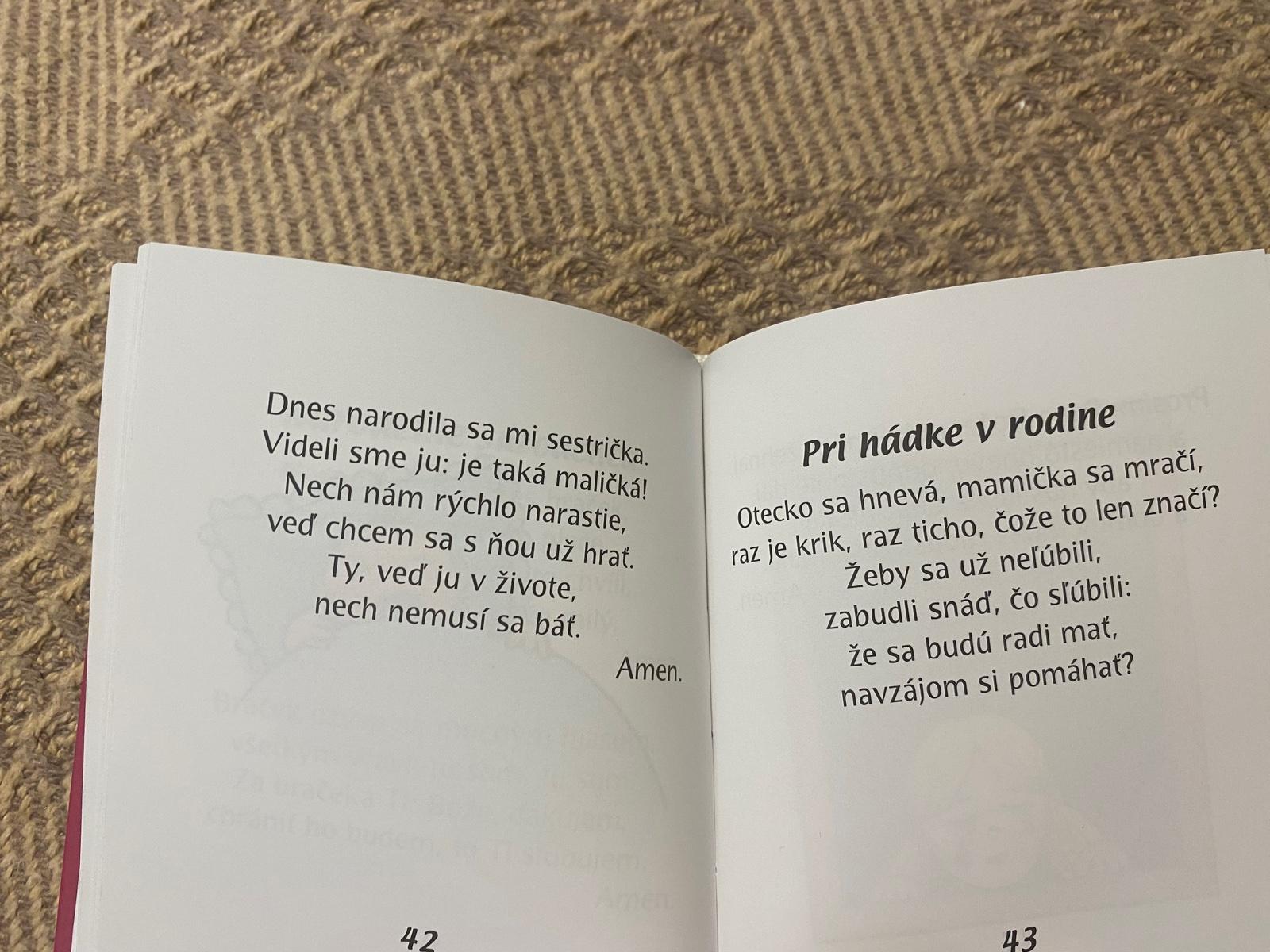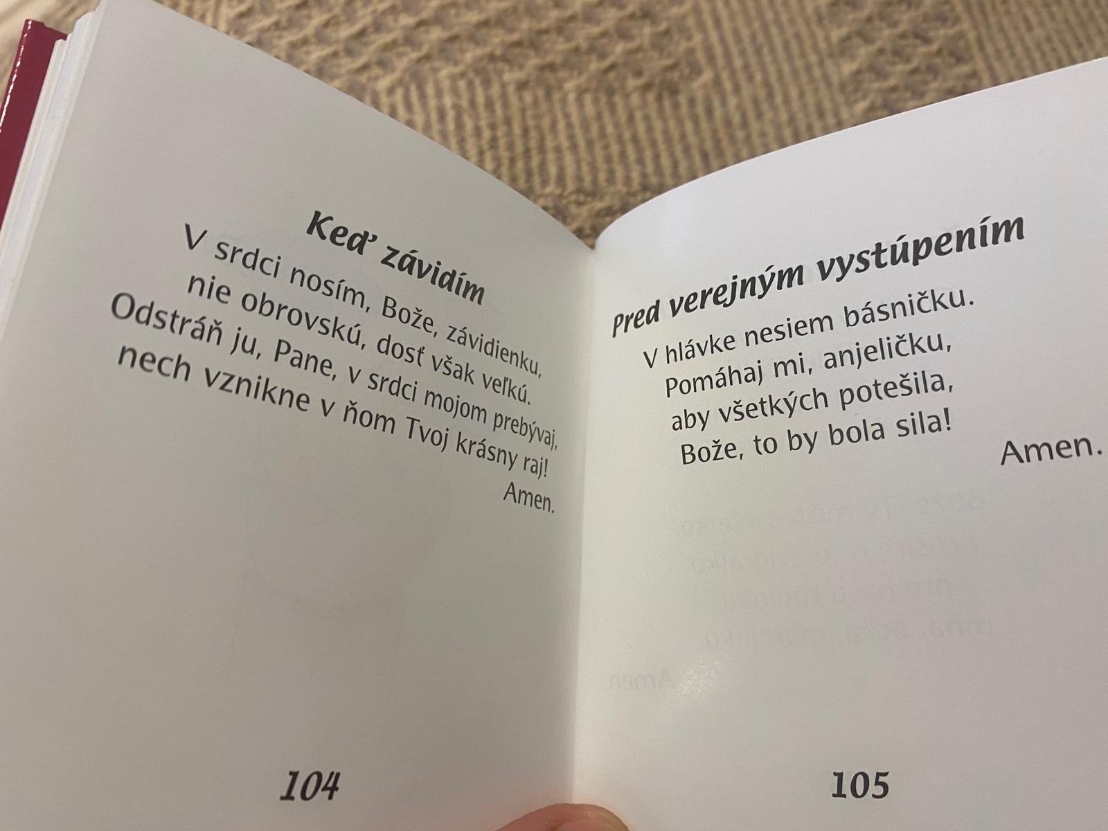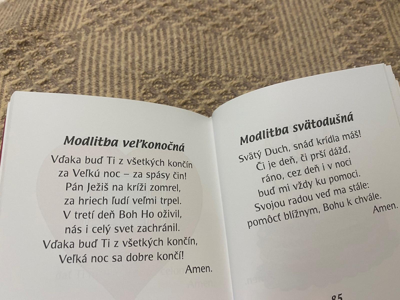 Z tejto knižočky bola nadšená moja 4-ročná dcéra ako zo žiadnej a podľa obrázkov si dokáže vybrať modlitbičku, ktorá jej práve pasuje, takže okrem náboženského charakteru spĺňa aj zábavný, čo je pre deti veľmi dôležité.