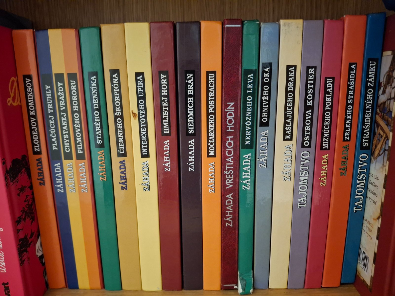 13 ks vo výbornom.stave bez poškodení cena jednotlivo 6 Eur. Kniha číslo 14 má trošku batrhnutý obal cena 4 Eur, Kniha Záhady vrešt8acich hodín v novom náhradnom obale 1,90 Eur. A knihy 76,77,78 sú spolu v jednej knihe cena 15 Eur. Cena za všetky spolu 95 Eur.