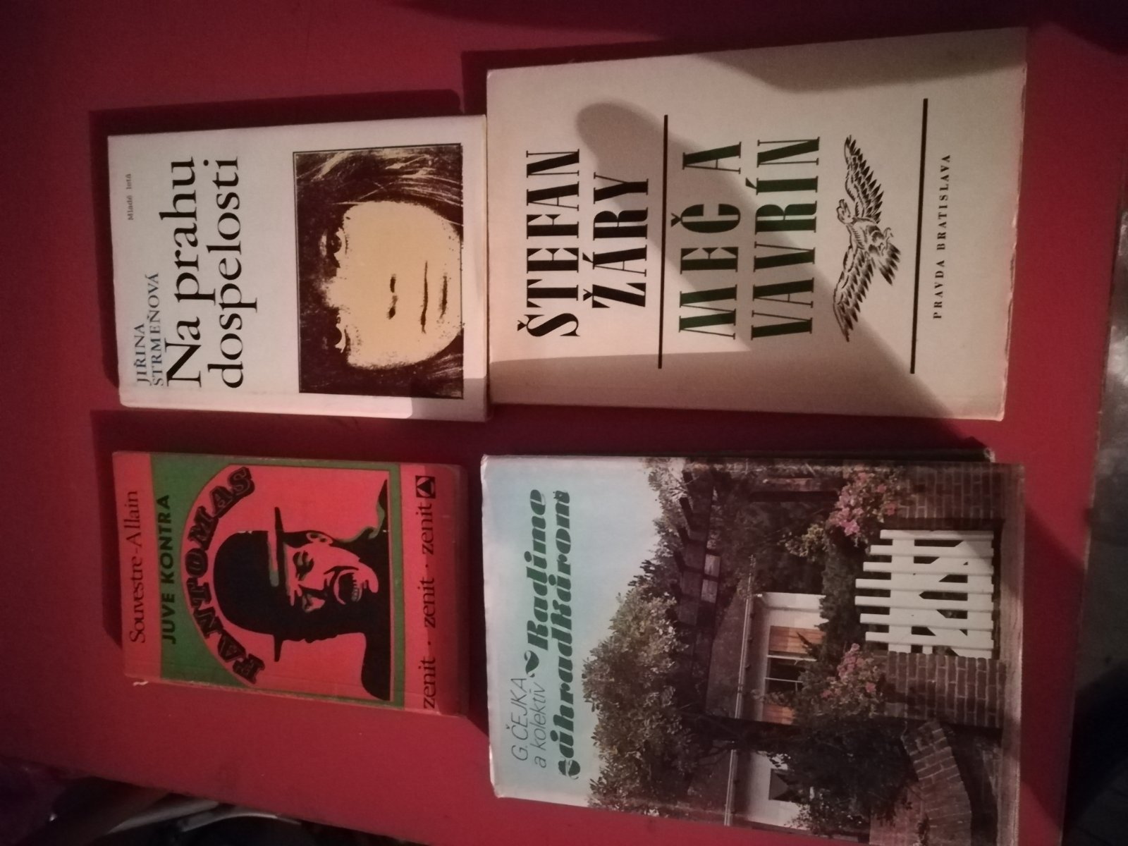 Predám. Knihy na prahu dospelosti cena 1euro, radíme záhradkárom 2eura, mec a vavrin cena 2eura, fantomas 1,50