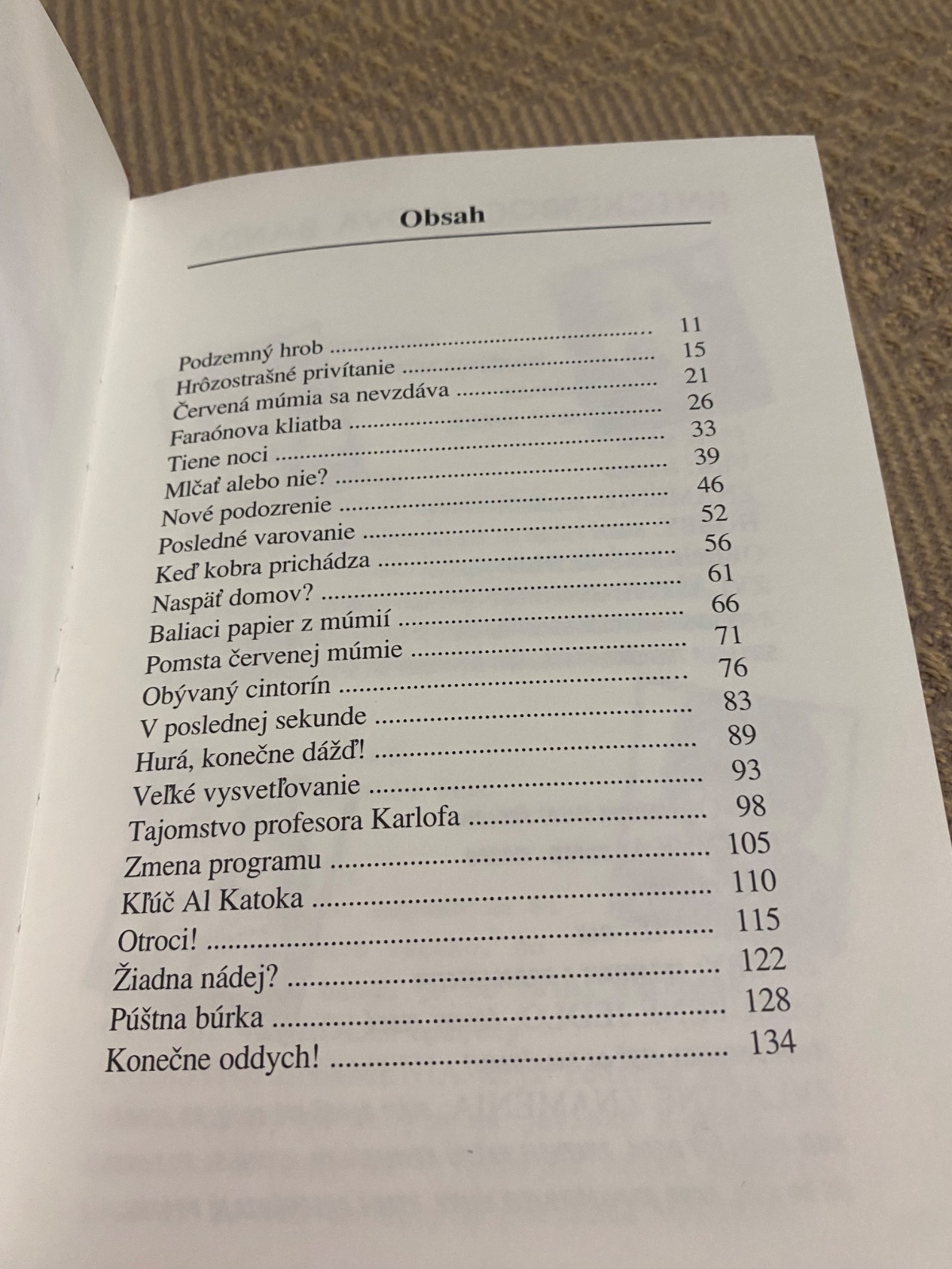 Knickerbockerova banda 2. Hneď po príchode do Egypta čaká na štyroch kamarátov, členov Knickerbockerovej bandy, hrozné privítanie. Niekto ich vláka do podzemnej hrobky, v ktorej odrazu ožije červená múmia. Kamenné vráta sa zatvoria a mladí detektívi sedia v pasci... Podarí sa im odhaliť miznutie vzácnych pokladov, pochádzajúcich z hrobiek slávnych faraónov?