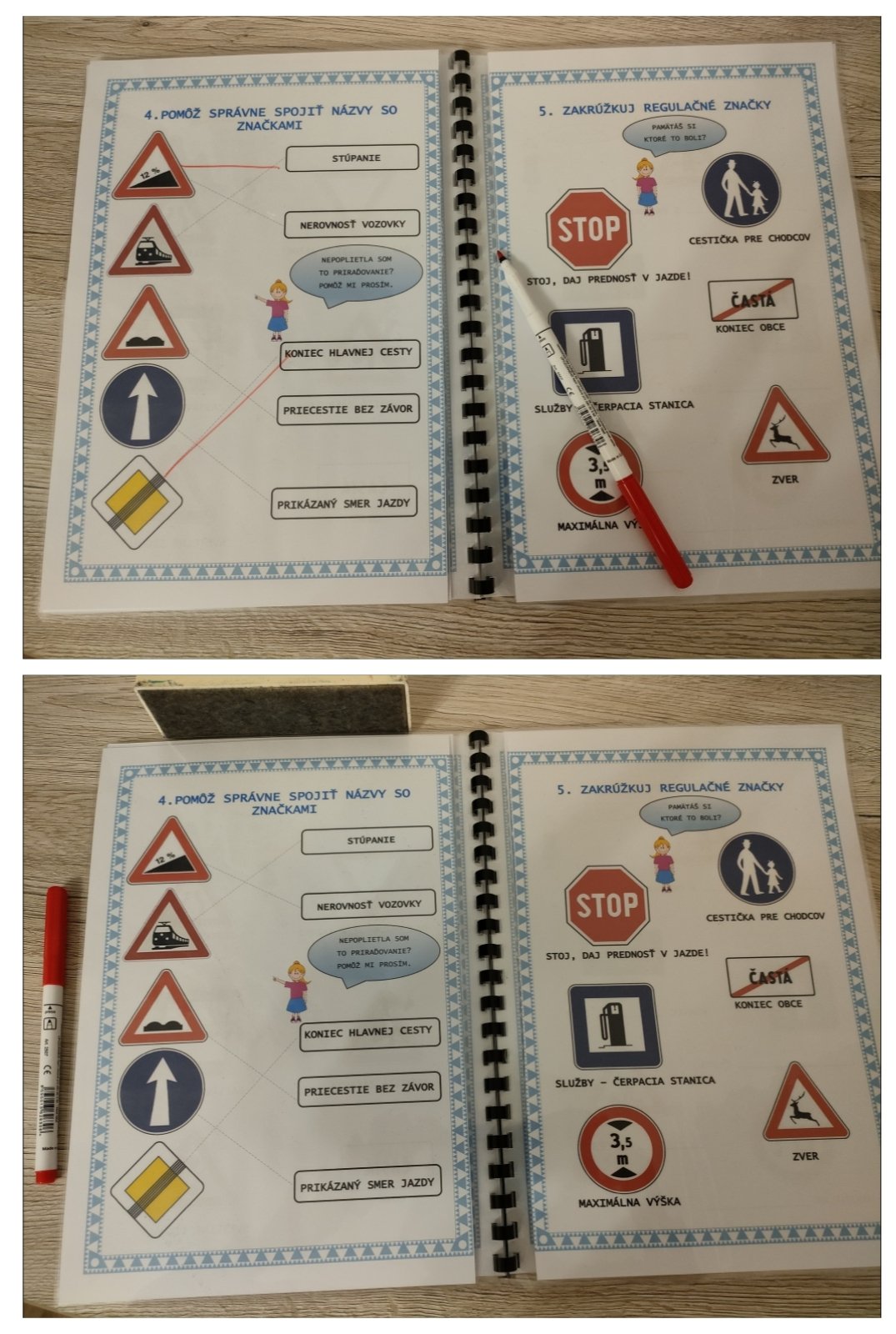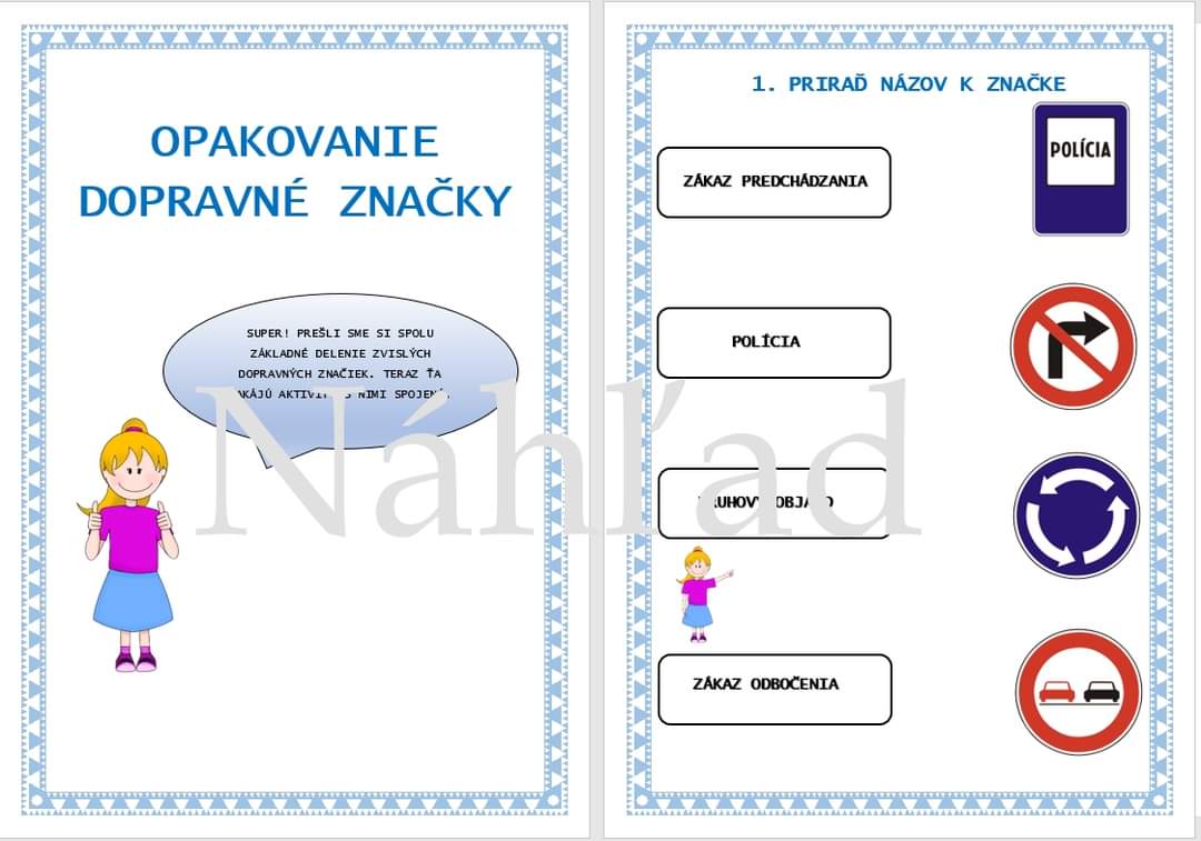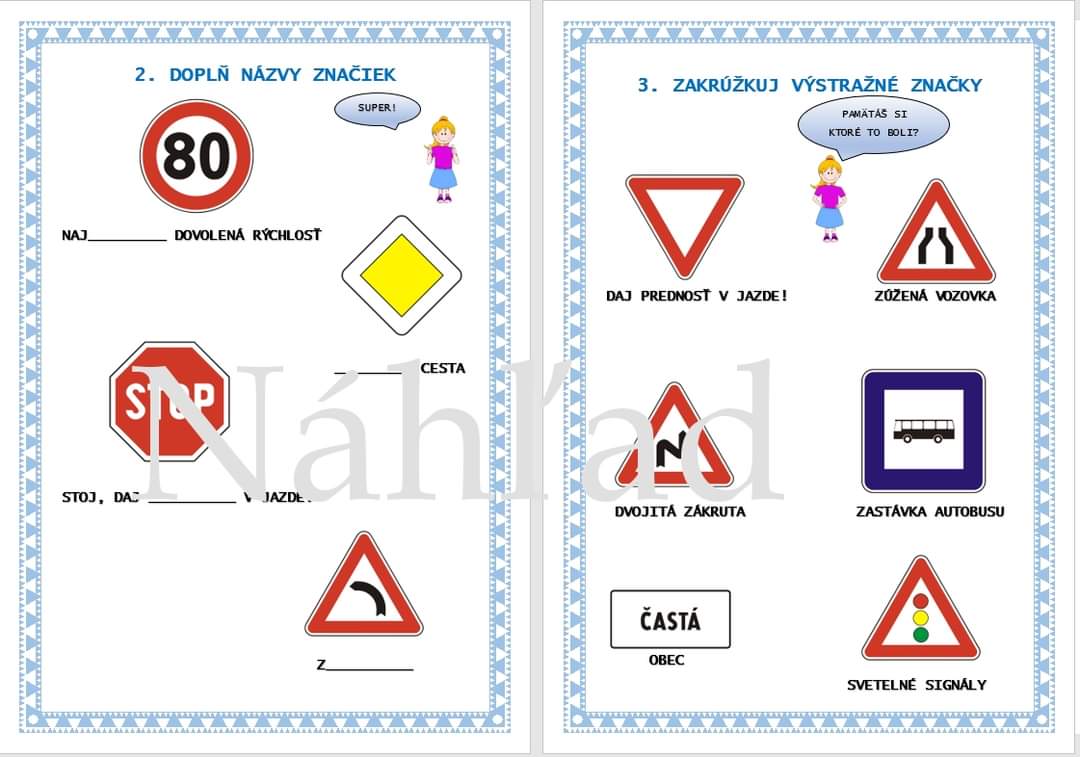 * V prvej časti sa dieťa zoznámi s dopravnými značkami a ich členením. Spolu 44 značiek.