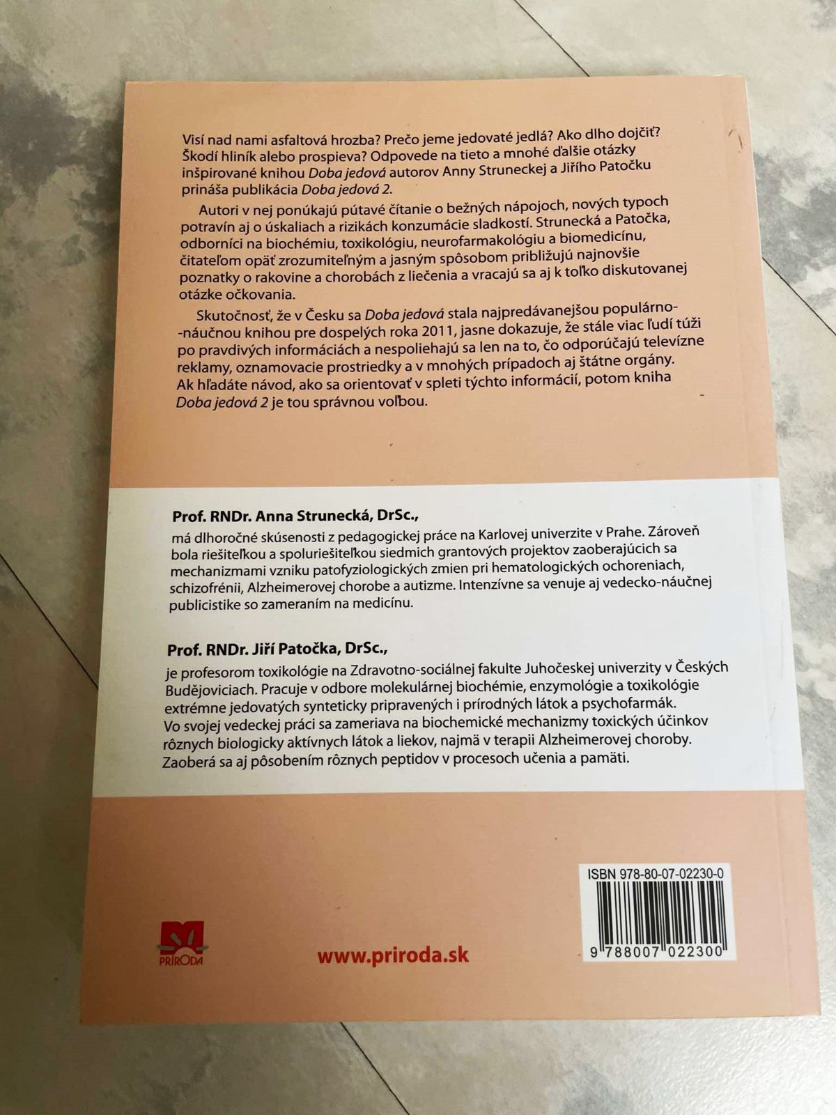 Visí nad nami azbestová hrozba? Prečo jeme jedovaté jedlá? Ako dlho dojčiť? Škodí hliník nášmu zdraviu alebo prospieva? Odpovede na tieto a mnohé ďalšie otázky inšpirované knihou Doba jedová autorov prof. Anny Struneckej a prof. Jiřího Patočku prináša aktualizovaná publikácia Doba jedová 2, ktorá ponúka pútavé čítanie o bežných nápojoch, nových typoch potravín aj o úskaliach a rizikách konzumácie sladkostí. Autori, odborníci na biochémiu, toxikológiu, neurofarmakológiu a biomedicínu, čitateľom zrozumiteľným a jasným spôsobom približujú najnovšie poznatky o rakovine a o chorobách z liečenia a vracajú sa aj k toľko diskutovanej otázke očkovania.