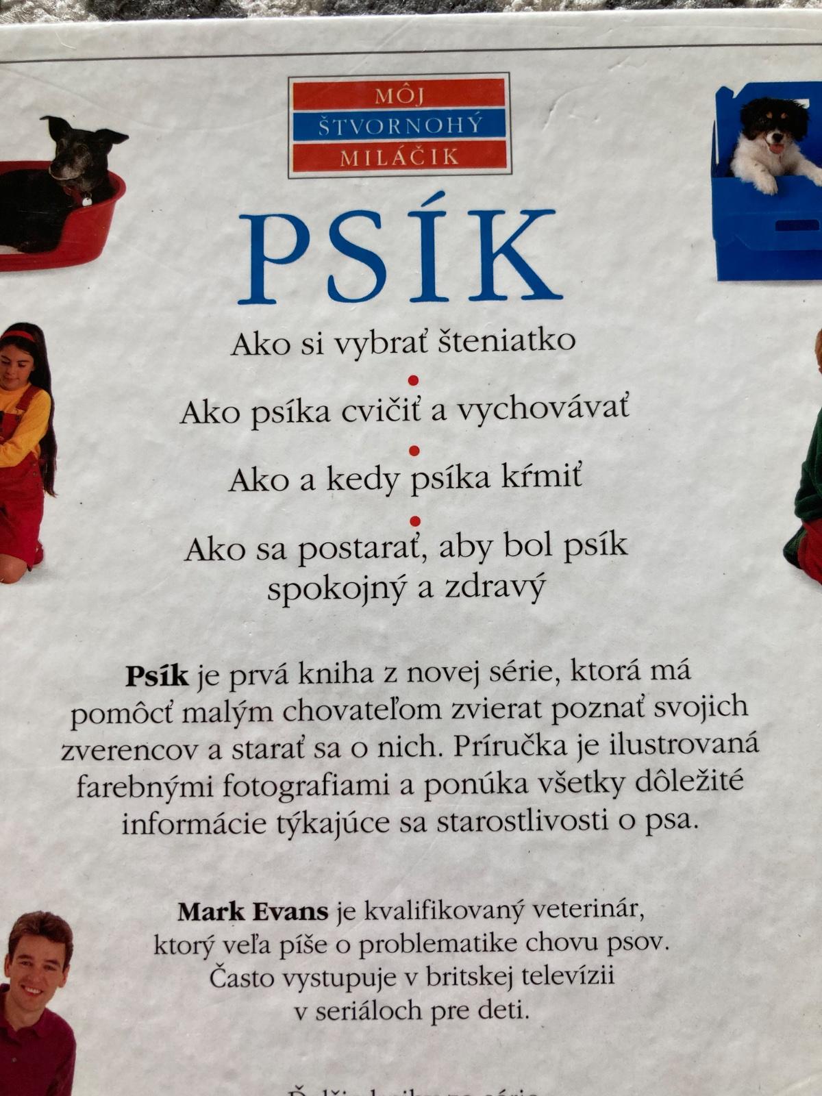 📌Psík je prvá kniha z novej edície, ktorá má pomôcť malým chovateľom zvierat poznať svojich zverencov a starať sa o nich. Príručka je ilustrovaná farebnými fotografiami a ponúka všetky dôležité informácie týkajúce sa starostlivosti o psa.