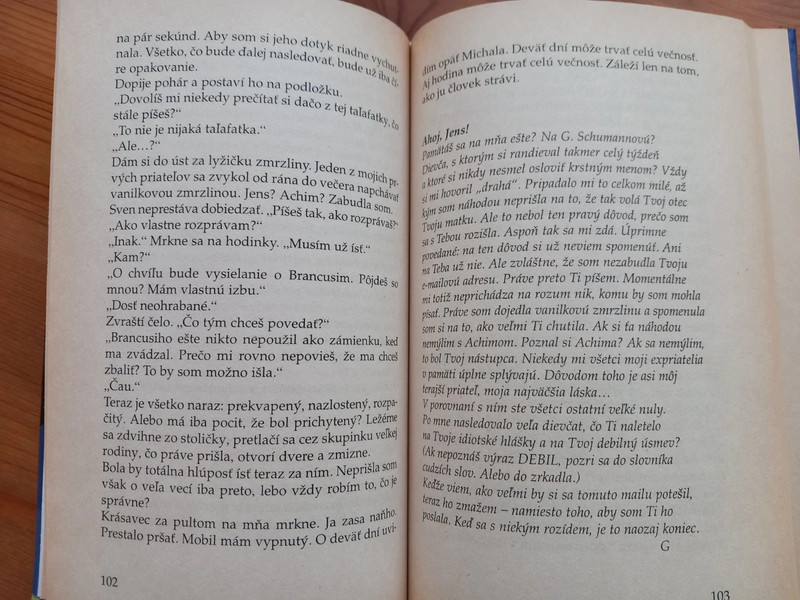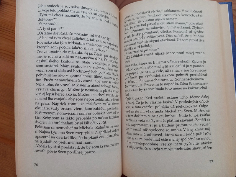 Príťažlivá a pekná Tabea Sonnescheinová žije so svojimi rodičmi v nádhernej vile na pobreží Severného mora. Prežíva najfantastickejšie prázdniny svojho života - zamiluje sa do Dávida ... Alebo je všetko inak? Možno sa Tabea volá Gabriela a prázdniny trávi s rodičmi v zastrčenom hniezde na pobreží. Má už plné zuby hry na flaute. Chce byť herečkou a učí sa na živom objekte. Doma má priateľa, ale napriek tomu flirtuje so Svenom a popritom si uvedomuje, že je zo dňa na deň ťažšie vydržať tieto klamstvá. Nekonvenčný román o hľadaní vlastnej identity a pravdivých pocitov - napínavý, dynamický, bláznivý!