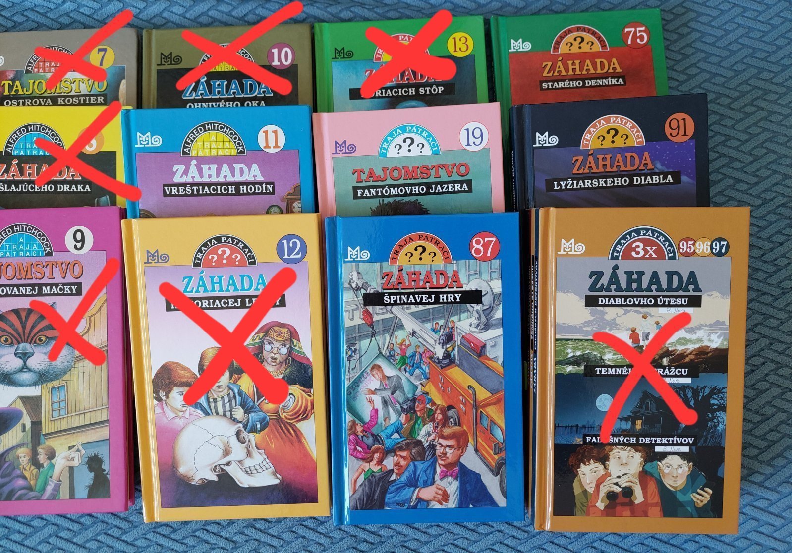 1 x prečítané knihy zo série Traja Pátrači, výborný stav. Dostupné už len čísla 11, 19, 87, 75, 91 (pozri foto). Uvedená cena je za všetky knihy spolu, je k nej potrebné pripočítať poštu. Trojkniha je tiež ešte dostupná, dostali sme ešte jednu rovnakú ako na obrázku, tá je úplne nová, nečítaná.