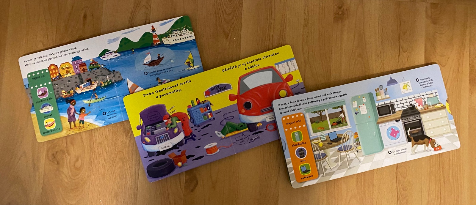 Knižky s možnosťou odkryvania, pohybovania, hľadania. U nás obľúbené, cena za ks 5 EUR, všetky spolu za 16€
