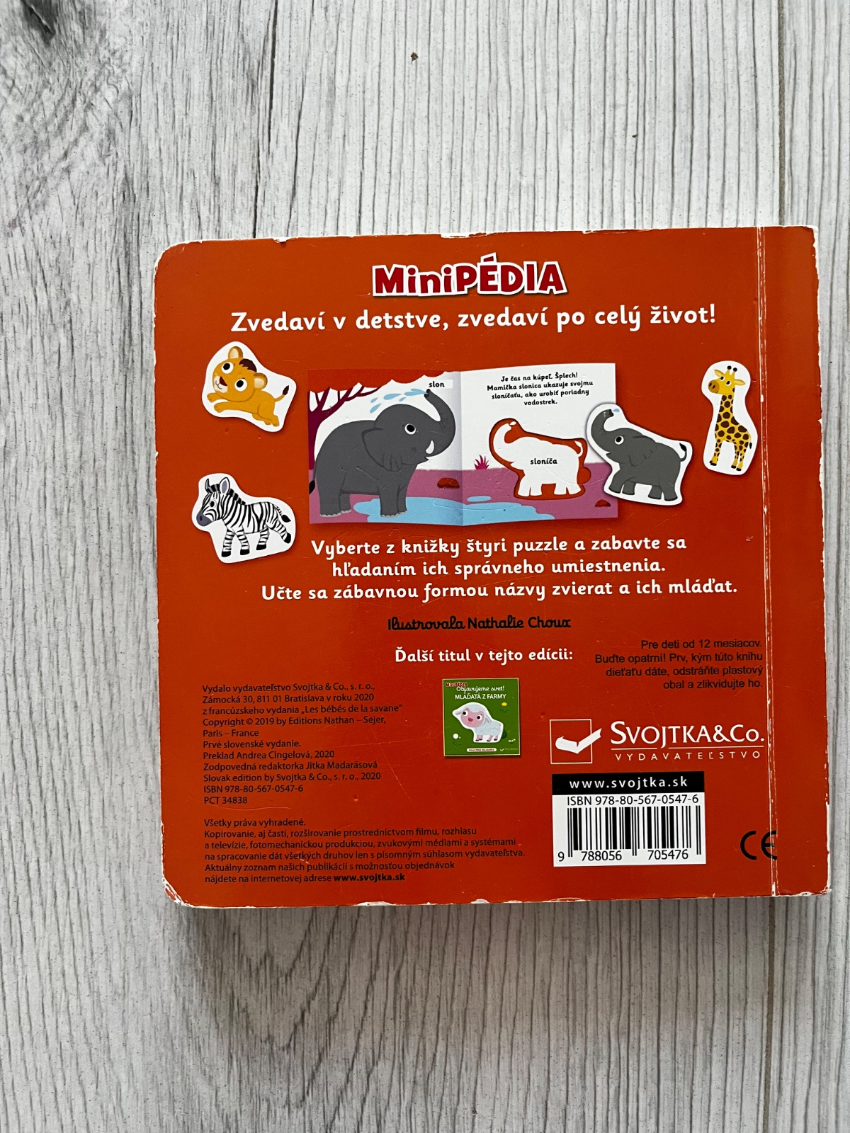 Slonie zábavky, bláznivé levíča a šantenie žriebätka zebry... zlož a zasa rozlož! Uč sa so zvieratkami. Táto knižka obsahuje veľké kusy puzzle a je zameraná na mláďatá zo savany. Roztomilé ilustrácie a krátke popisy sú ideálne na hranie aj objavovanie nových informácií o mláďatách z divej savany. Veľké a pevné kusy puzzle sú vhodné pre detské ruky a zaručia, že prežijú nejednu pútavú hru. Toto leporelo je vhodné pre najmenších čitateľov, pretože si precvičia jemnú motoriku aj schopnosti skladať a priradovať správne objekty dohromady.