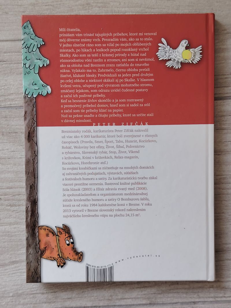 Milí čitatelia, prinášam vám trinásť tajuplných príbehov, ktoré mi venoval môj dôverne známy vrch. Prezradím vám, ako sa to stalo. V jedno slnečné ráno som sa túlal po mojich obľúbených miestach, po lúkach a lesíkoch popod rozoklaný vrchol Skalky. Ako som sa tešil z krásnej prírody a hútal nad rôznorodosťou vôní rastlín a stromov, ani som si nevšimol, ako sa obloha nad Breznom sa zrazu zatiahla do tmavého súkna. Vyľakalo ma to. Zahrmelo, čiernu oblohu preťali žiarivé, kľukaté blesky. Predvádzali sa jeden pred druhým po celej oblohe a niektoré skákali aj po Skalke. V hlasnom kvílení vetra, učupený pod vývratom mohutného stromu, zmáčaný lejakom, som odrazu uvidel čudesné postavy a začul ich podivné príbehy. Keď besnenie živlov skončilo a ja som roztrasený a premočený pribehol domov, hneď som si sadol za stôl a začal som tie príbehy klásť na papier. Nuž sa pekne usaďte a čítajte príbehy, ktoré sa určite stali v dávnej minulosti.