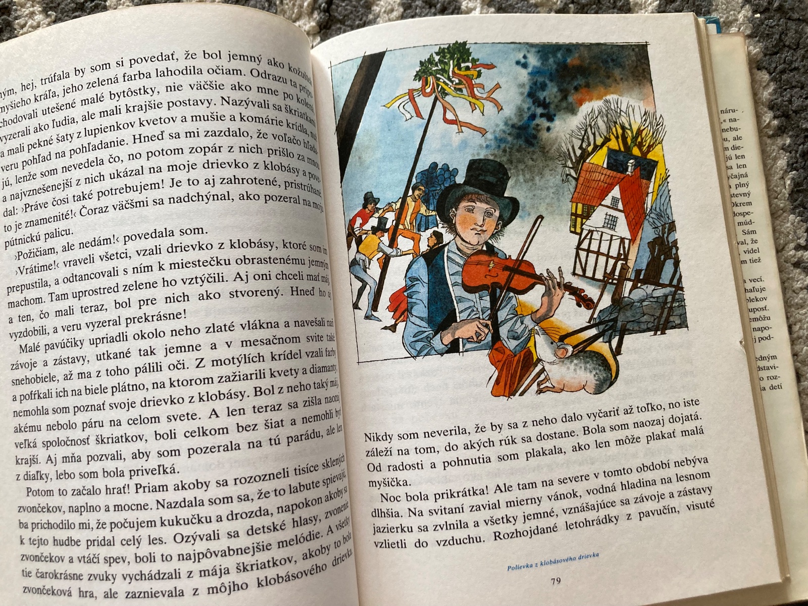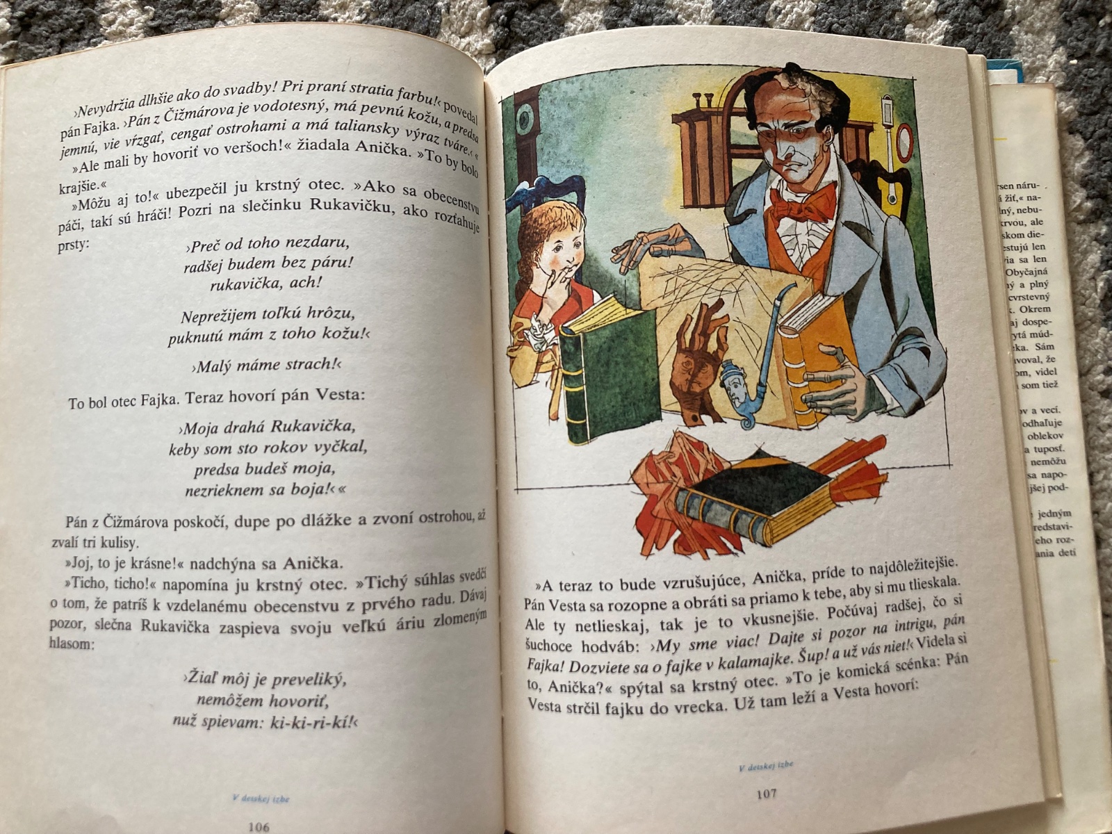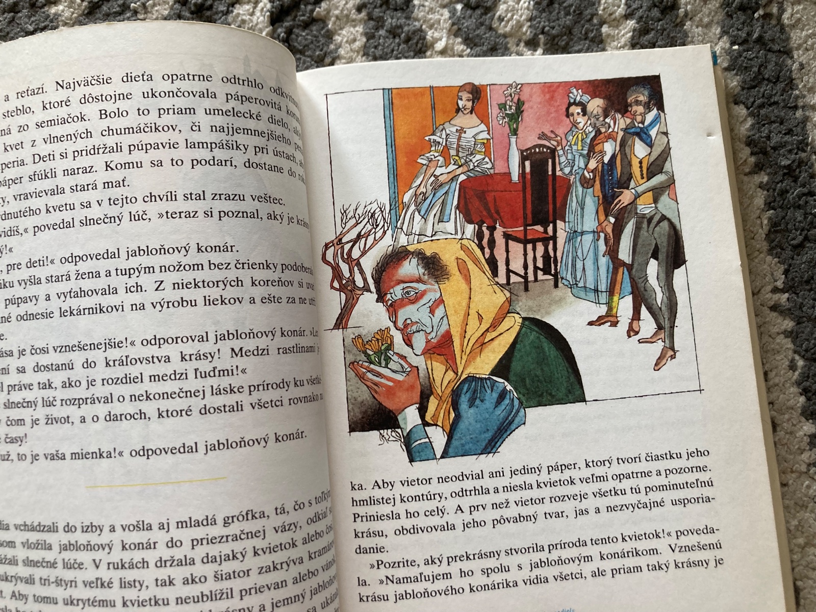 Velmi pekný stav, krásna retro knižka, hodnotna, zachovala s krasnymi ilustraciami, strany su pekne biele, bez pečiatok a bez vpisov, zboku má mierne poškodené strany