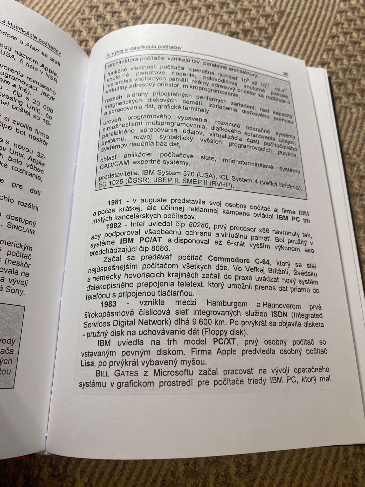 Obsah publikácie, okrem študijných vysokoškolských textov, obsahuje množstvo užitočných poznatkov, ktoré poslúžia aj ostaným záujemcom o informačné technológie. V knihe sa čitateľ oboznámi s vývojom počítačov, ich technickým vybavením, so základmi databázového spracovania, s problematikou počítačových vírusov a komunikačných služieb, bezpečnosťou informačnej činnosti, ale aj s ďalšími vývojovými trendmi.