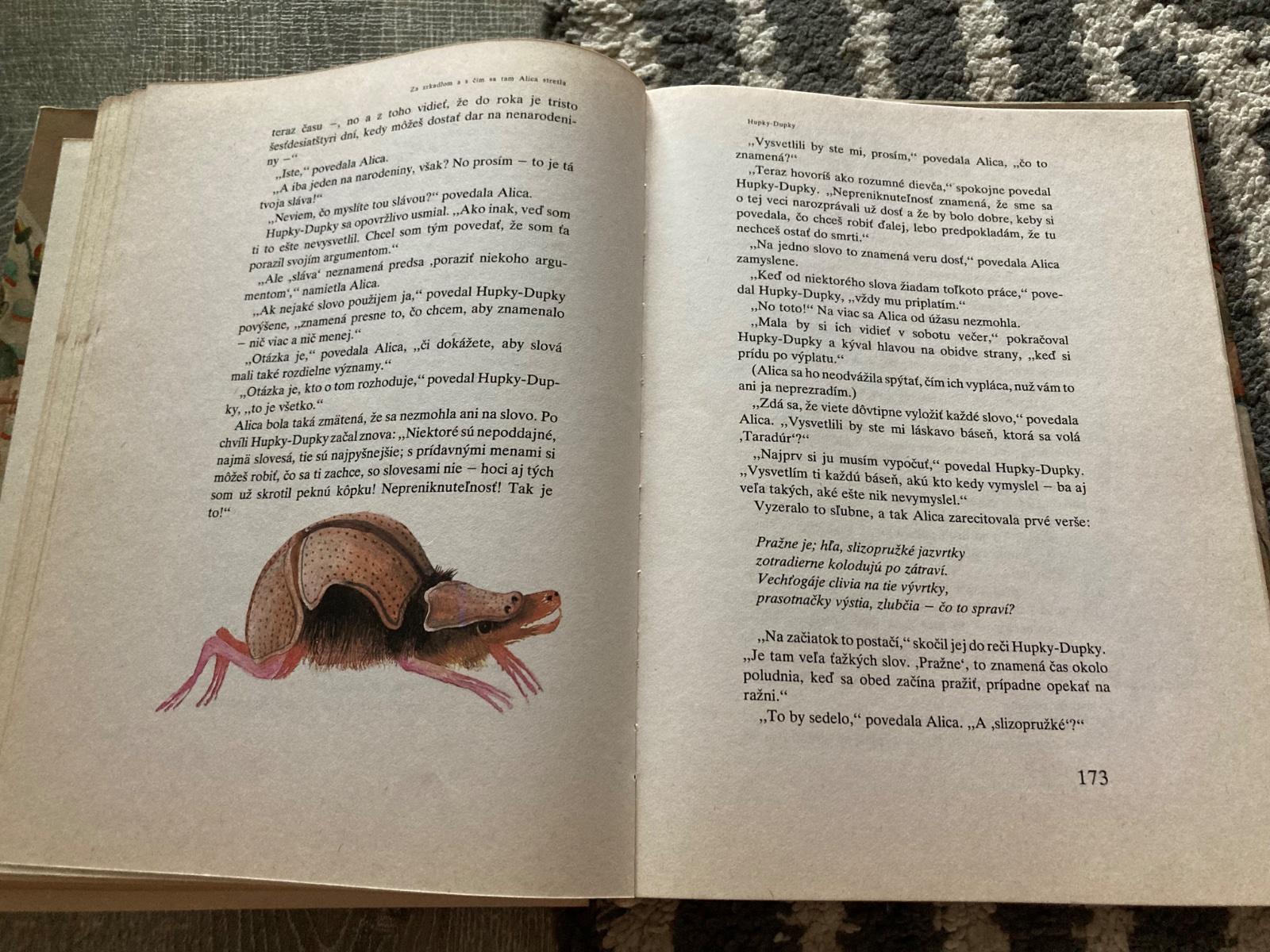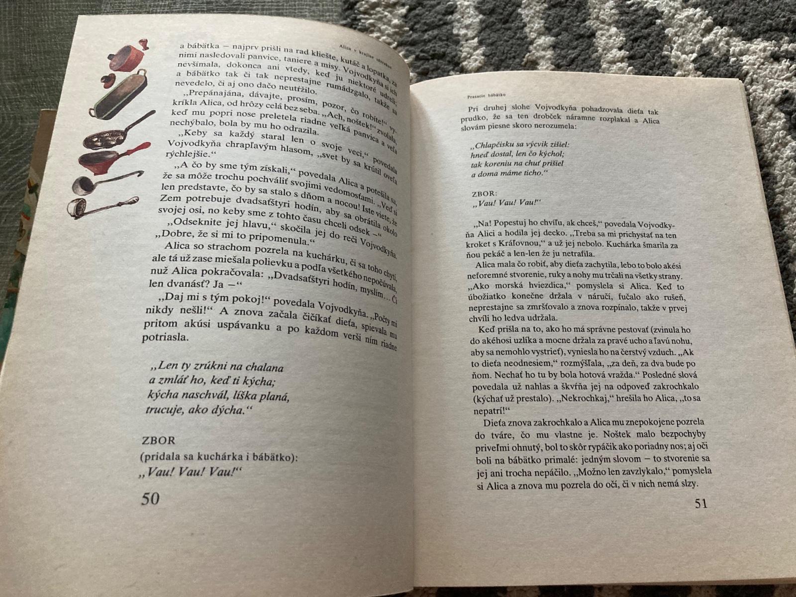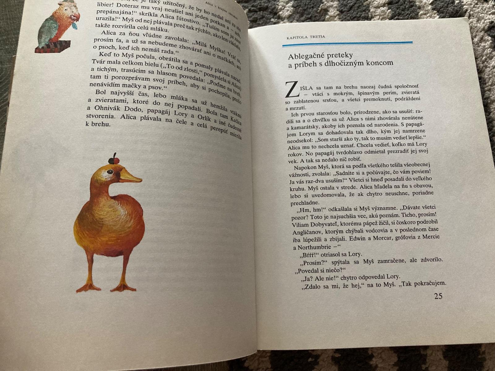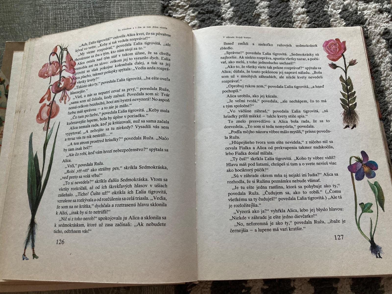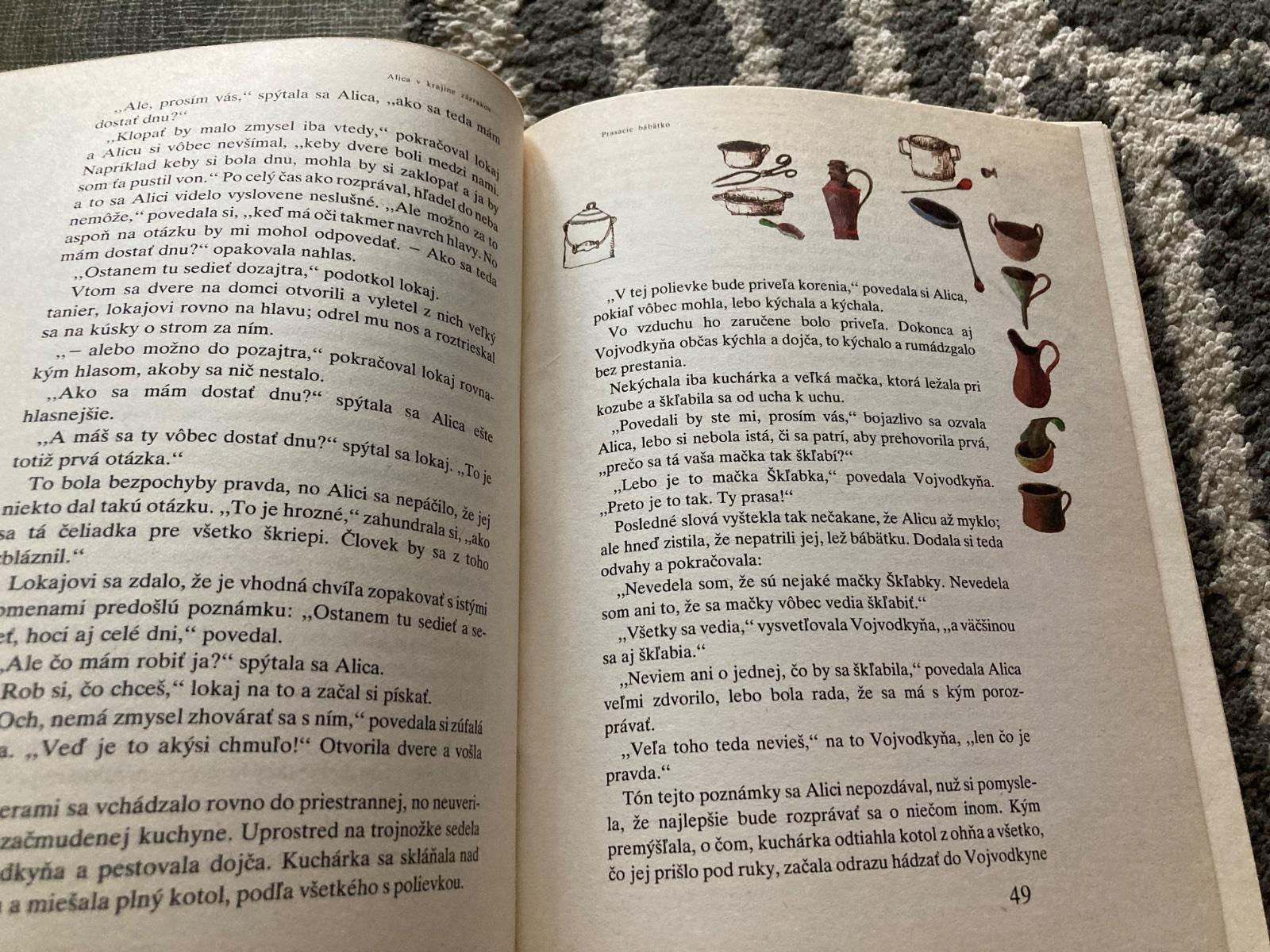 📌Príbehy o Alici v krajine zázrakov a za zrkadlom, ktoré povymýšľal a spísal ešte v 19. storočí anglický matematik a profesor na univerzite v Oxforde Lewis Carroll, sa stali obľúbenými prakticky na celom svete. Alicu poznajú deti a dospelí rovnako ako Pippi Dlhú pančuchu, Pinocchia alebo Medvedíka Pú. Je známa vec, že matematici majú už z titulu svojho zamestnania neraz veľkú tvorivú fantáziu a zmysel pre obdivuhodné kombinácie, paradoxy a nezmysly. Zmysel pre krásne a bláznivé nezmysly mal aj Lewis Carroll – a jeho Alica sa v tom fantastickom nezmyselnom svete pohybuje s detskou samozrejmosťou a bezstarostnosťou, až dospelí nevychádzajú z údivu. A občas si pritom aj zaveršuje a zaspieva. Jej bláznivé príbehy by mali pobaviť nielen deti, ale aj rodičov či už starých alebo mladých.