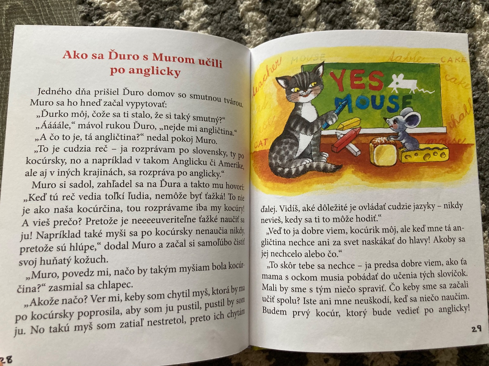 📌Chlapec Ďuro a jeho kamarát kocúr Muro - to je teda podarená dvojka! Keď sa tí dvaja do niečoho pustia, stojí to za to! Nie vždy spravia všetko správne, ale zaručene si pri tom užijú veľa zábavy! Chcete aj vy spoznať ich veselé školské dobrodružstvá? Všetky ich nájdete v tejto knižke. Dočítate sa v nej napríklad o tom, ako Ďuro s Murom písali diktát, ako vyzerá mačací krasopis, ako znie správny kocúrí spev alebo aj o tom, prečo mačky nehovoria po anglicky. Do čítania, milé deti!