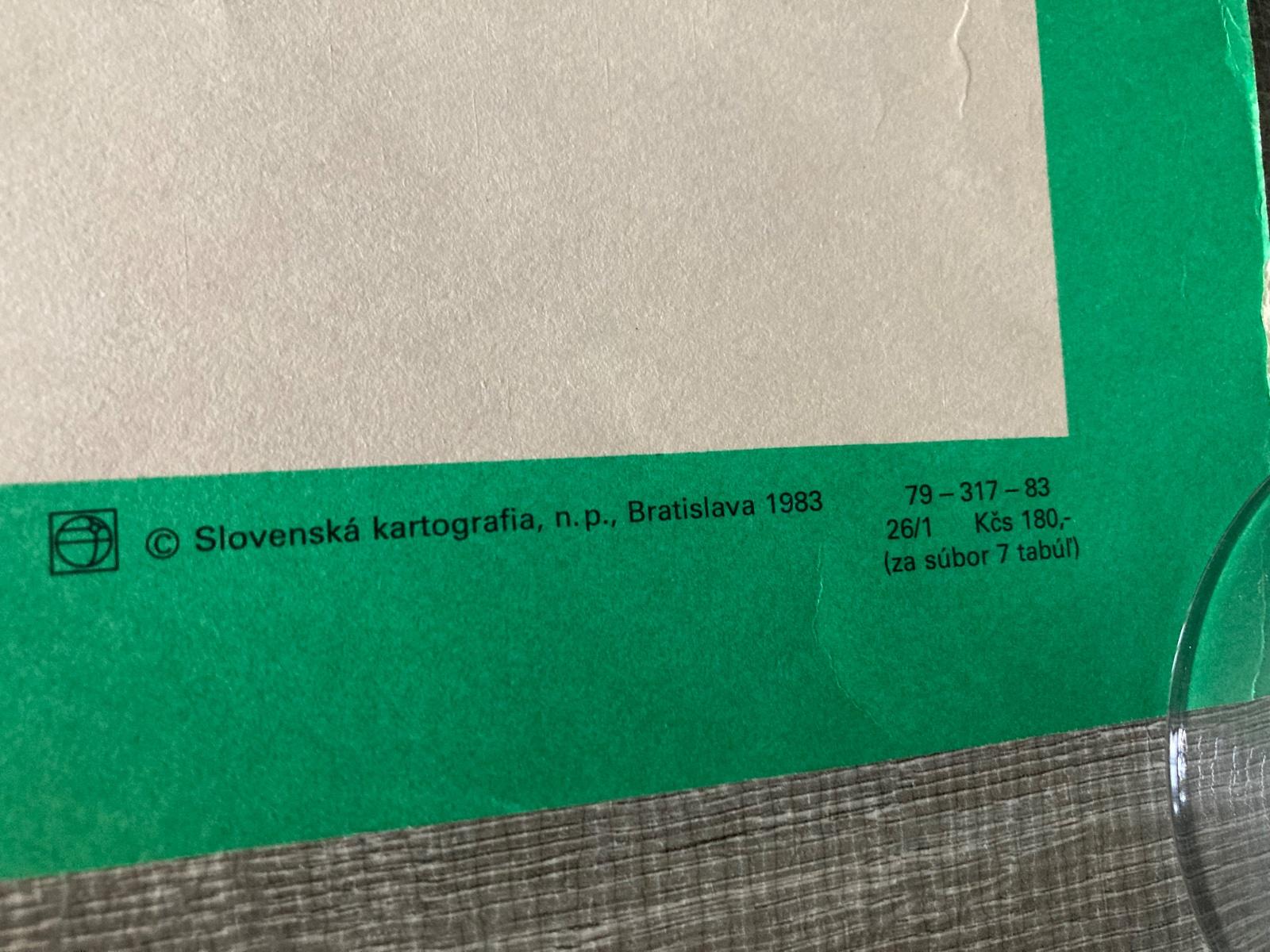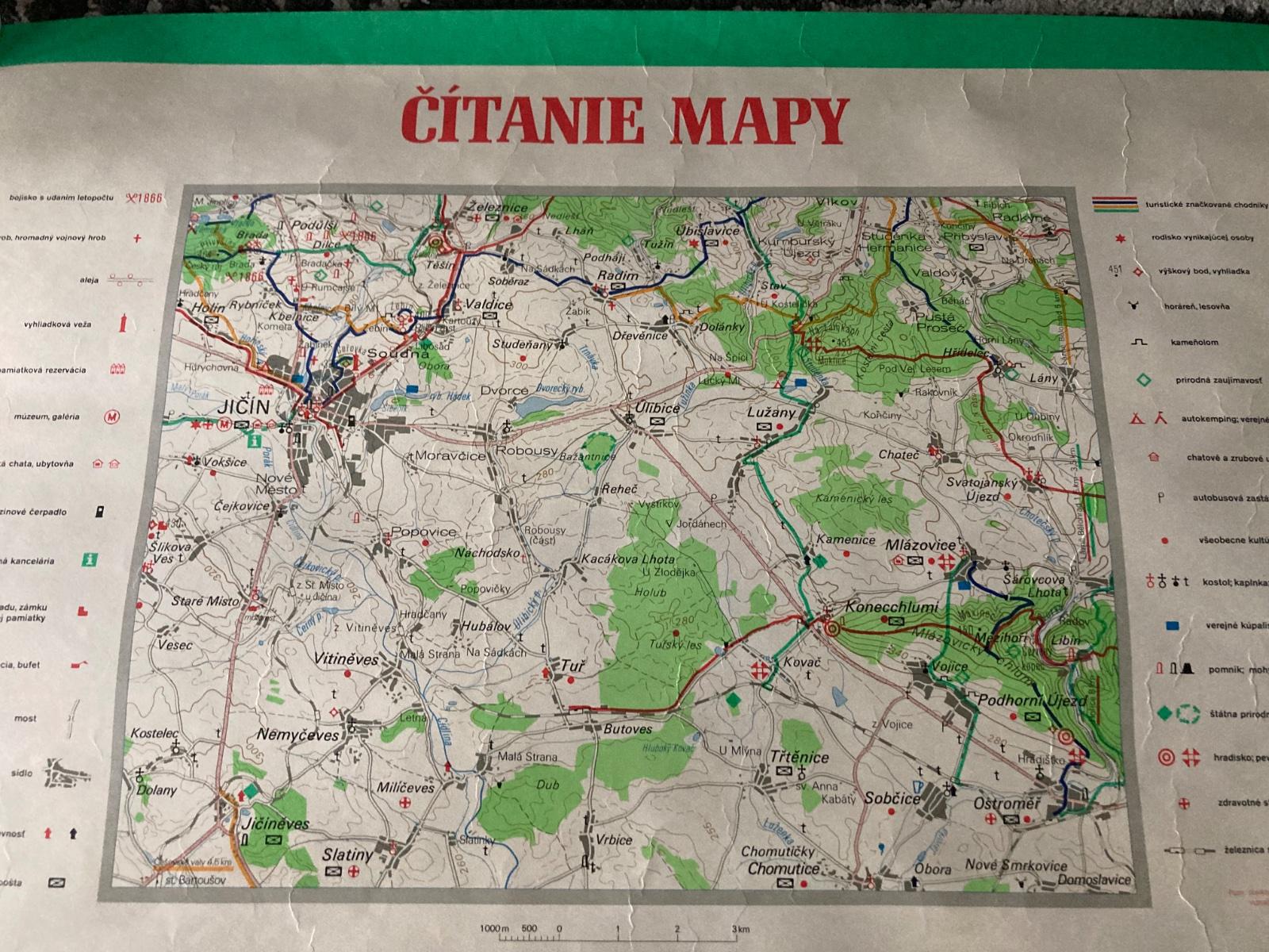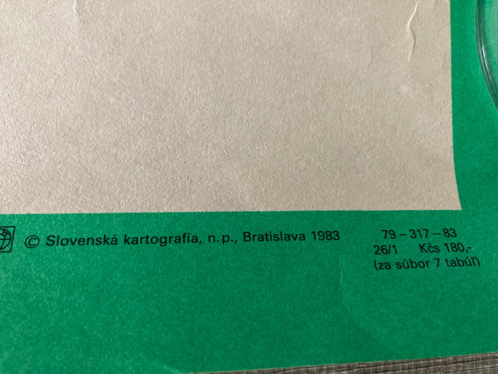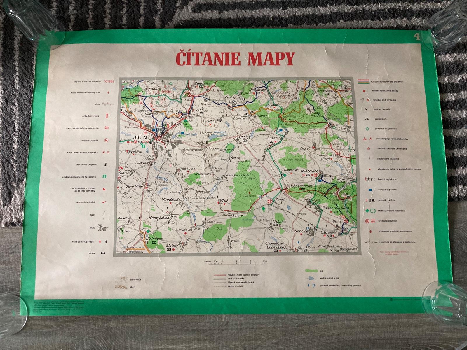 pekný stav, staršia nástenná učebná pomôcka - čítanie mapy, základy kartografie