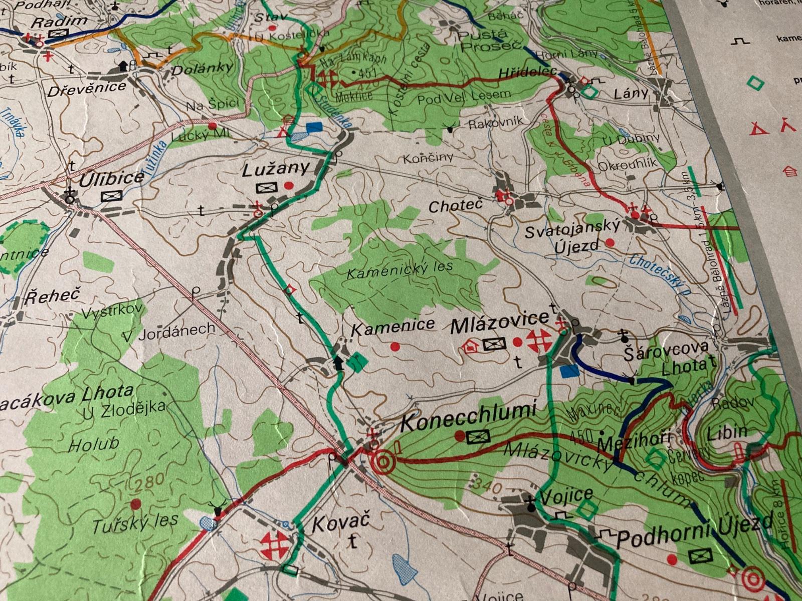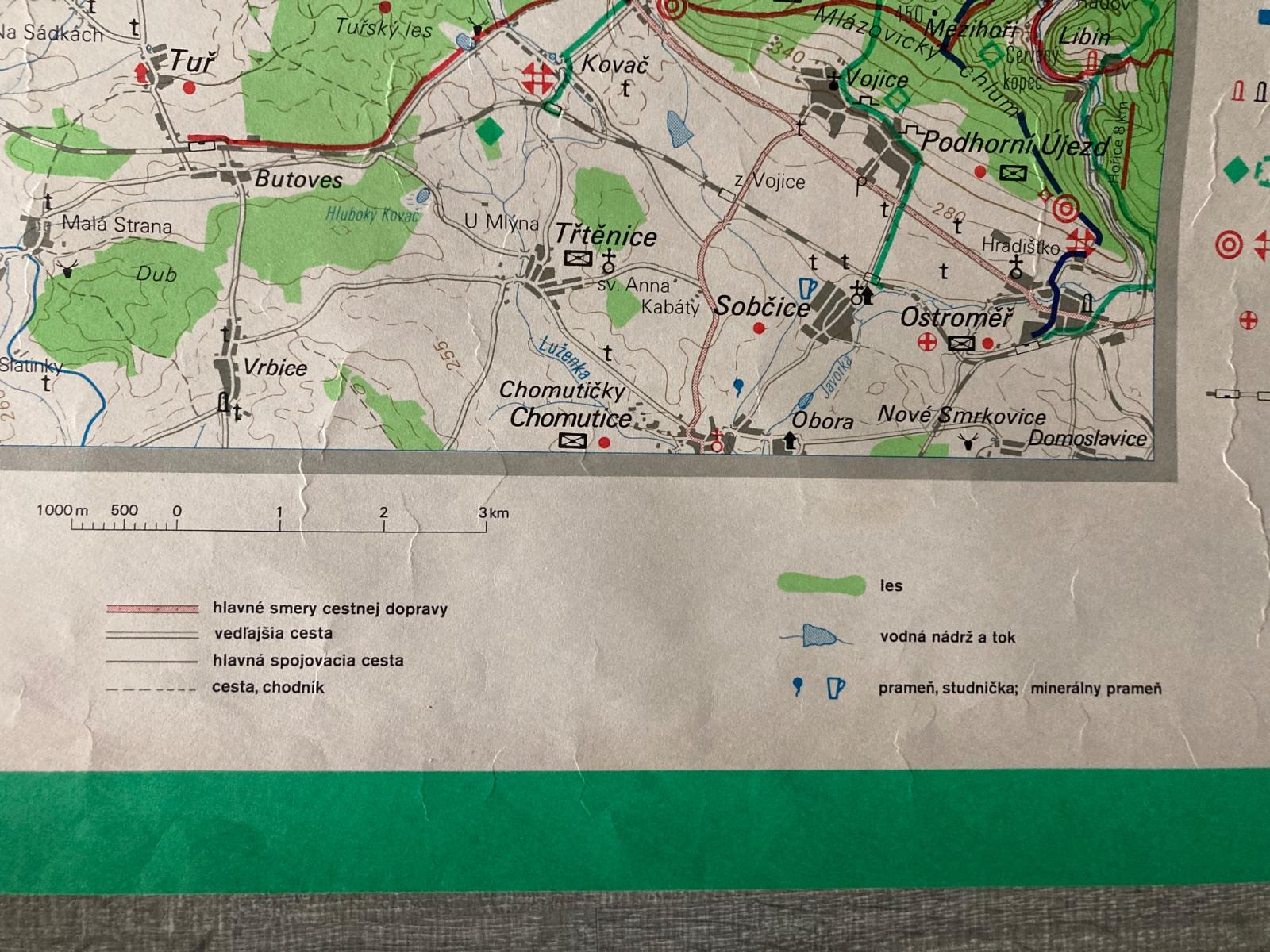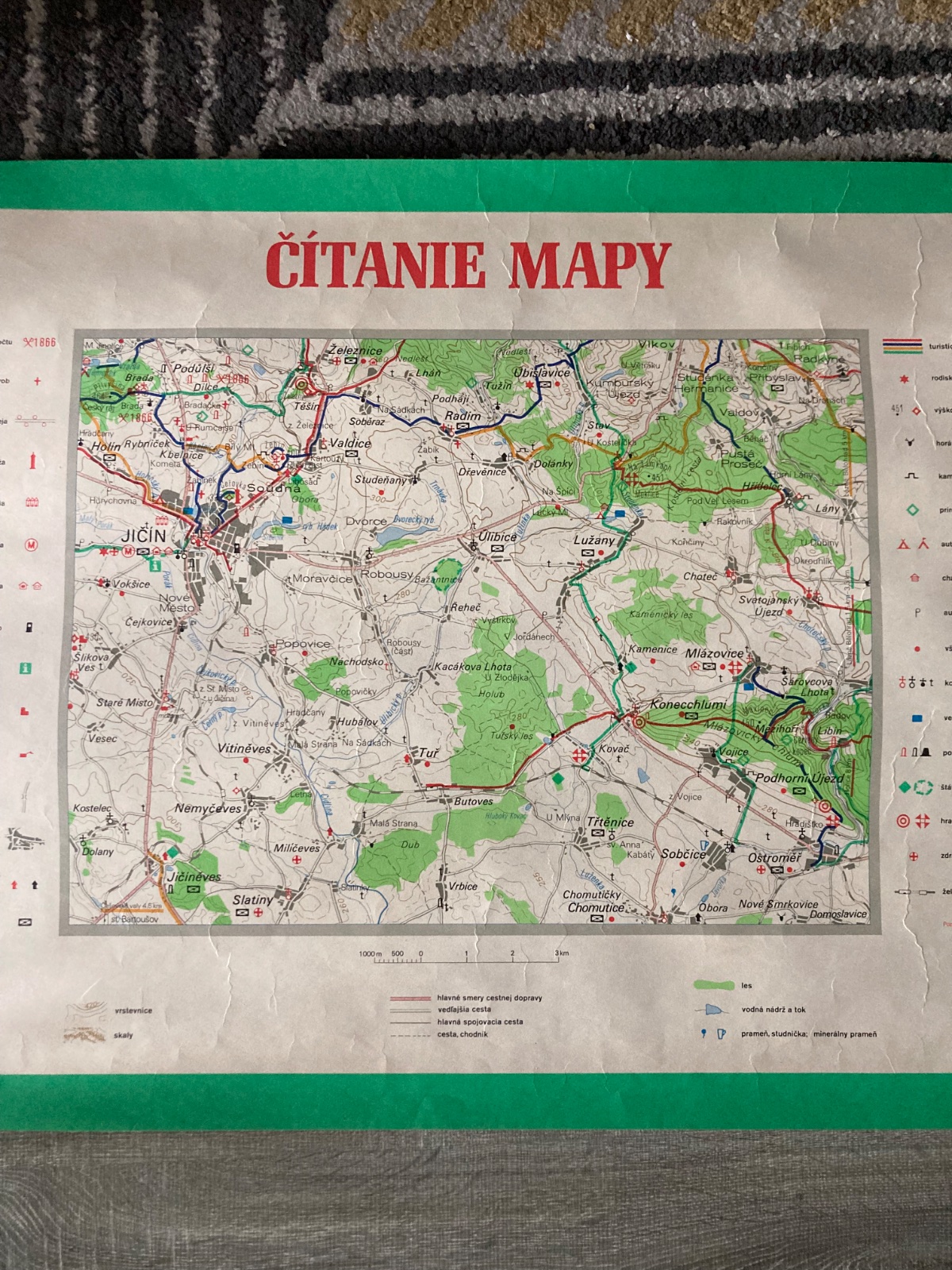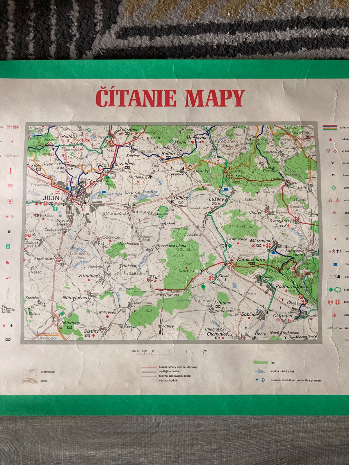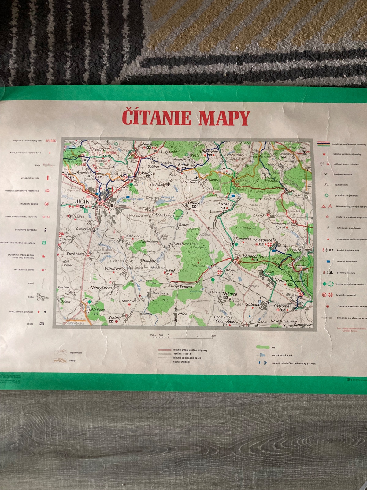 pekný stav, staršia nástenná učebná pomôcka - čítanie mapy, základy kartografie