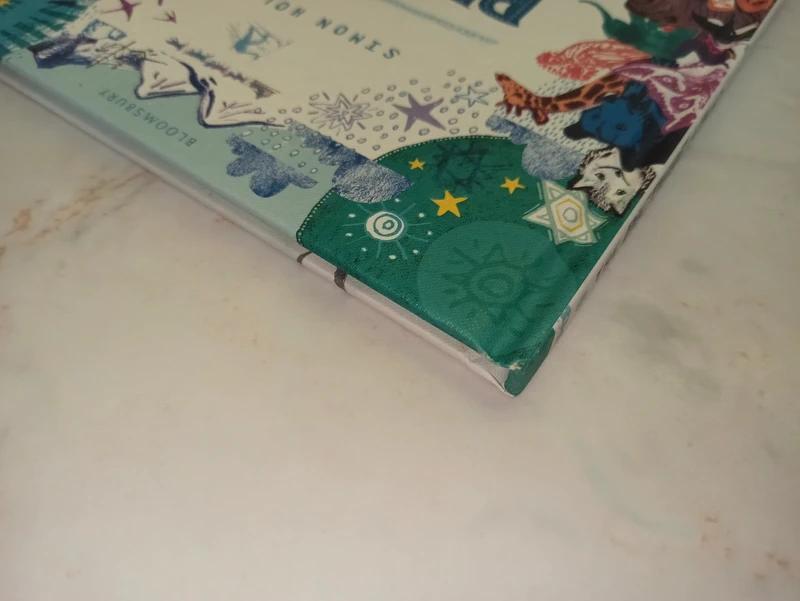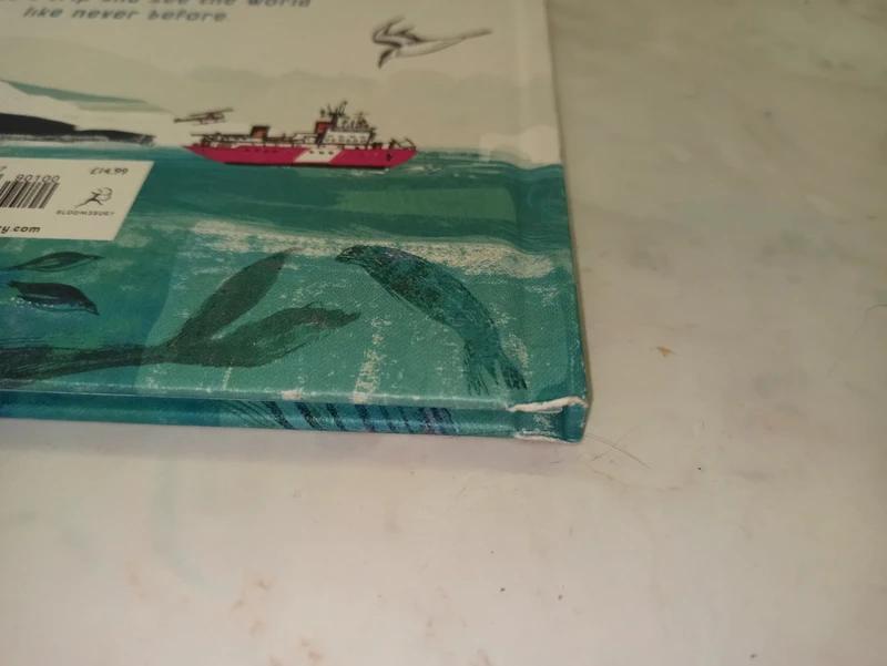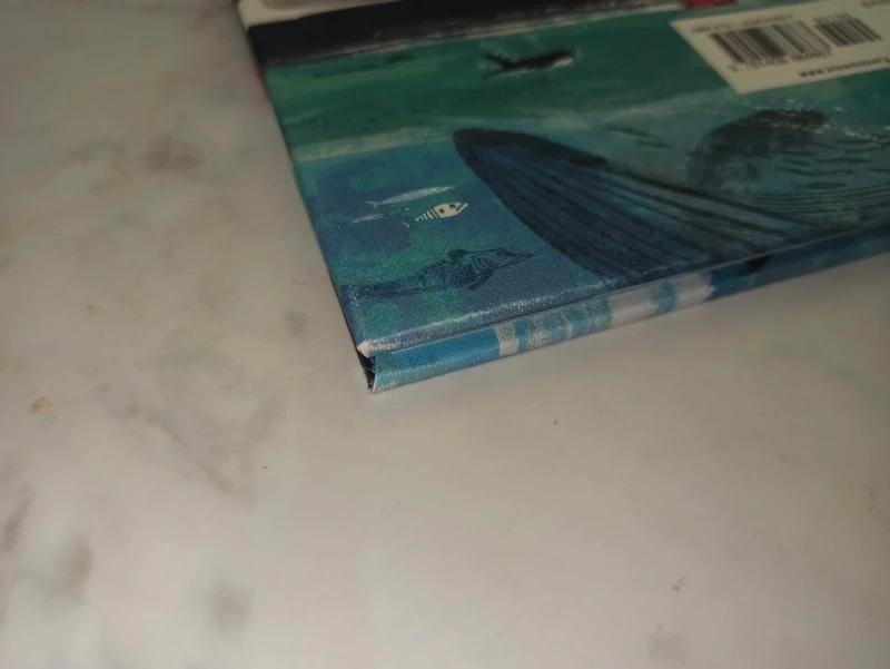 Nova / necitana kniha, ktora ma na hranach viditelne suchance z cestovania po polici, kuk foto.