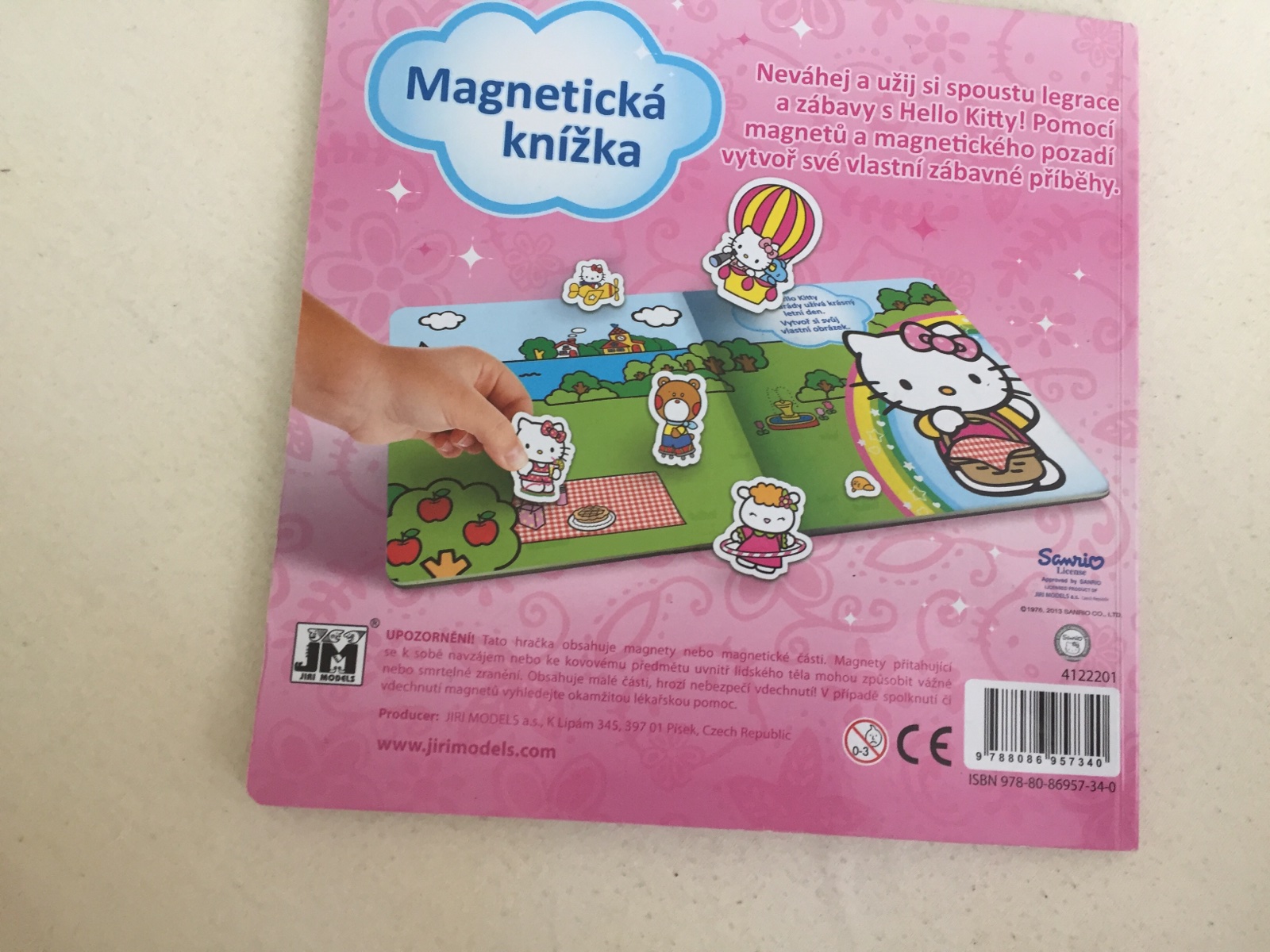 Magnetická knižka Hello Kitty. Jedna magnetka chýba.