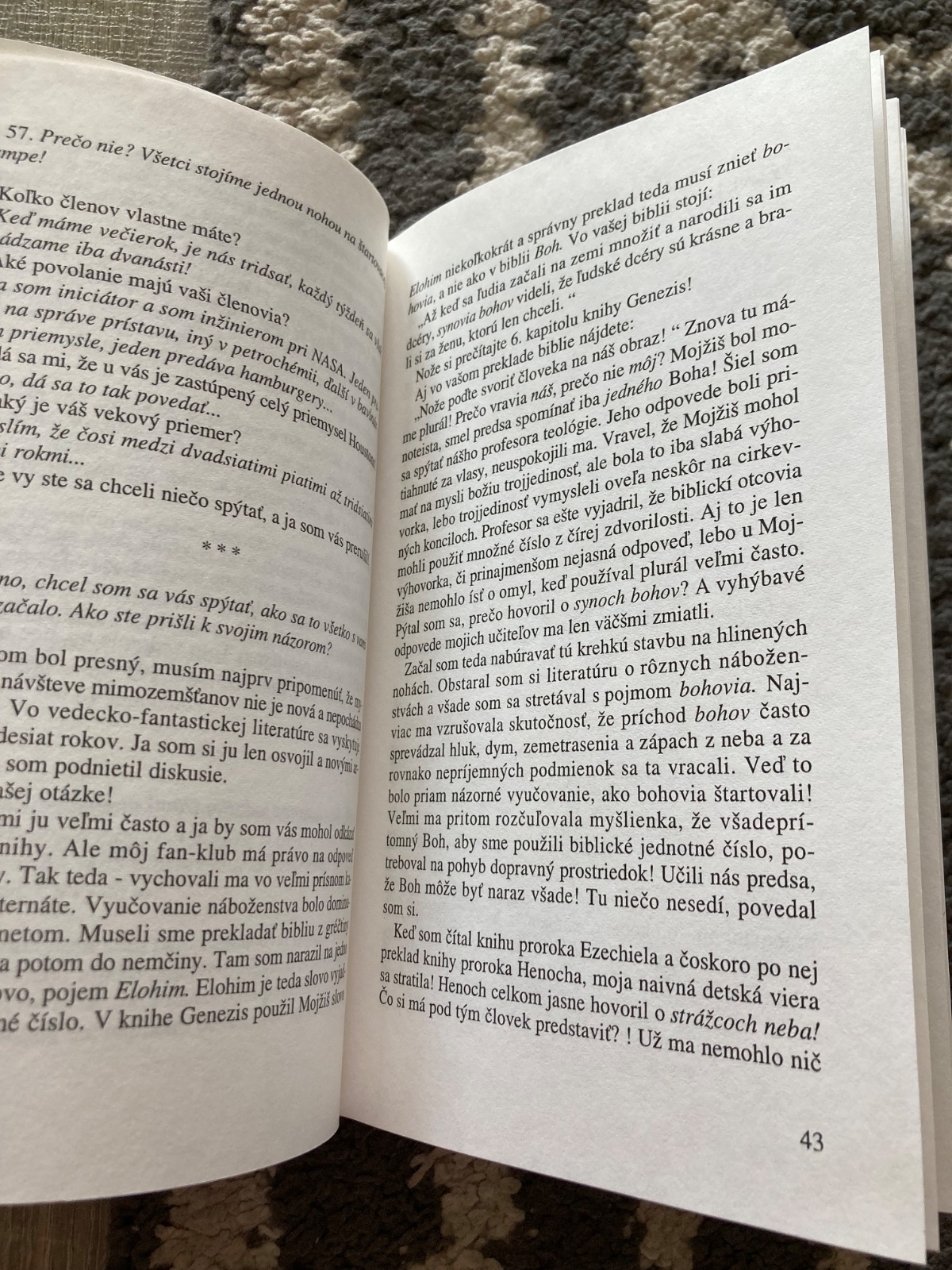 📌Nežičlivci ho nazývajú fantastom, plagiátorom a luhárom. Priaznivci zasa obdivujú odvahu, originalitu a presvedčivosť, s akou spája fkaty s hypotézami a postupne čoraz jasnejší a presnejší obraz svedectva o našich stykoch s mimozemšťanmi. Kniha ponúka výber bezmála dvoch stoviek najzaujímavejších otázok, ktoré sa na autora spúšťali ako krížová paľba všade, kde sa objavil. Odpovedal otvorene i na ostré, často nezdvorilé výpady a obhajoval svoje tézy o návštevách z ďalekého vesmíru. Nazeráme i do zákulisia jeho výprav za tajomnými nálezmi v neprístupných končinách hôr, pralesov a podzemných svetov. Táto kniha je zároveň určitým prierezom celej autorovej teórie a fascinujúcim dokumentárnym svedectvom o jednej z najpopulárnejších osobností súčasnej literatúry faktu.