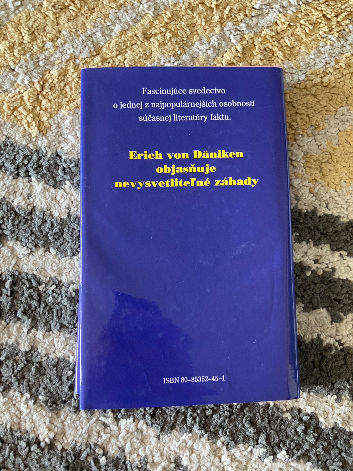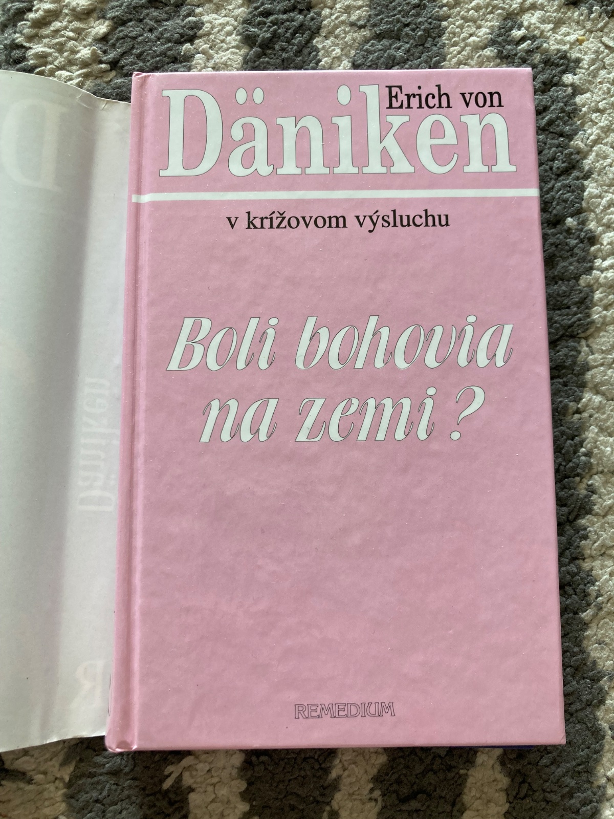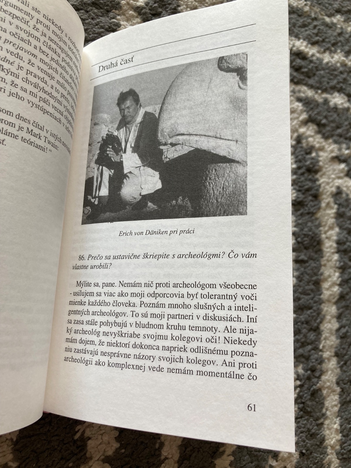 📌Däniken v krížovom výsluchu. Má priaznivcov i nežičlivcov. Kniha obsahuje výber dvoch stoviek najzaujímavejších otázok, ktoré sa na autora spúšťali ako krížová paľba všade, kde sa objavil. Odpovedal otvorene i na ostré, čsto nezdvorilé výpady a obhajoval svoje tézy. Dozvedáme sa nové skutočnosti o biblickej potope, pohrebiskách zvierat na Aljaške, atd.