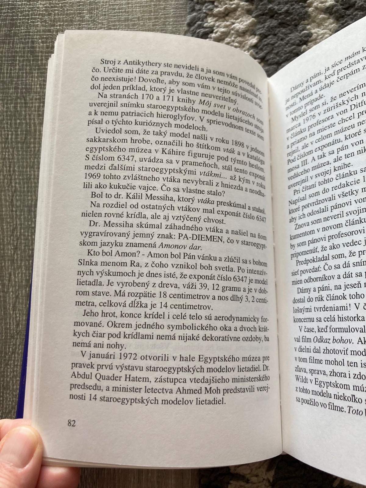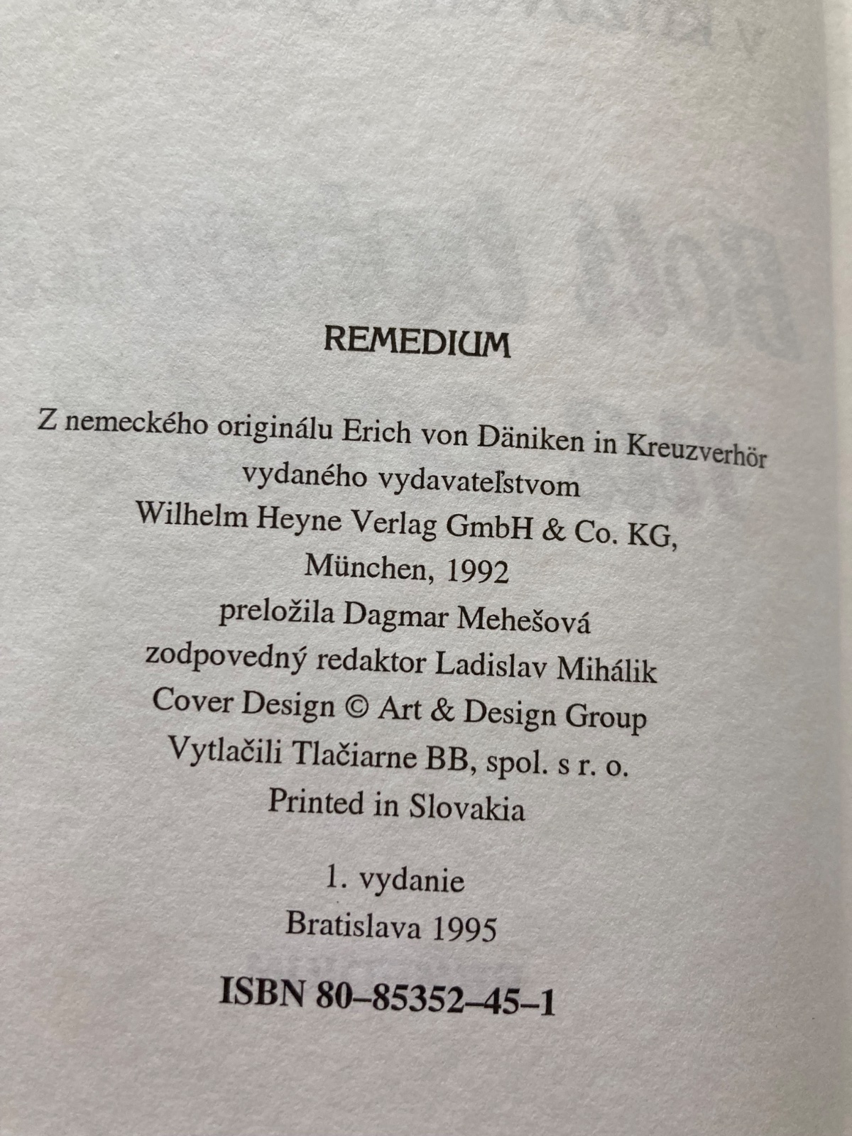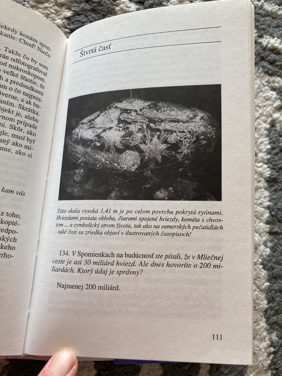 📌Däniken v krížovom výsluchu. Má priaznivcov i nežičlivcov. Kniha obsahuje výber dvoch stoviek najzaujímavejších otázok, ktoré sa na autora spúšťali ako krížová paľba všade, kde sa objavil. Odpovedal otvorene i na ostré, čsto nezdvorilé výpady a obhajoval svoje tézy. Dozvedáme sa nové skutočnosti o biblickej potope, pohrebiskách zvierat na Aljaške, atd.