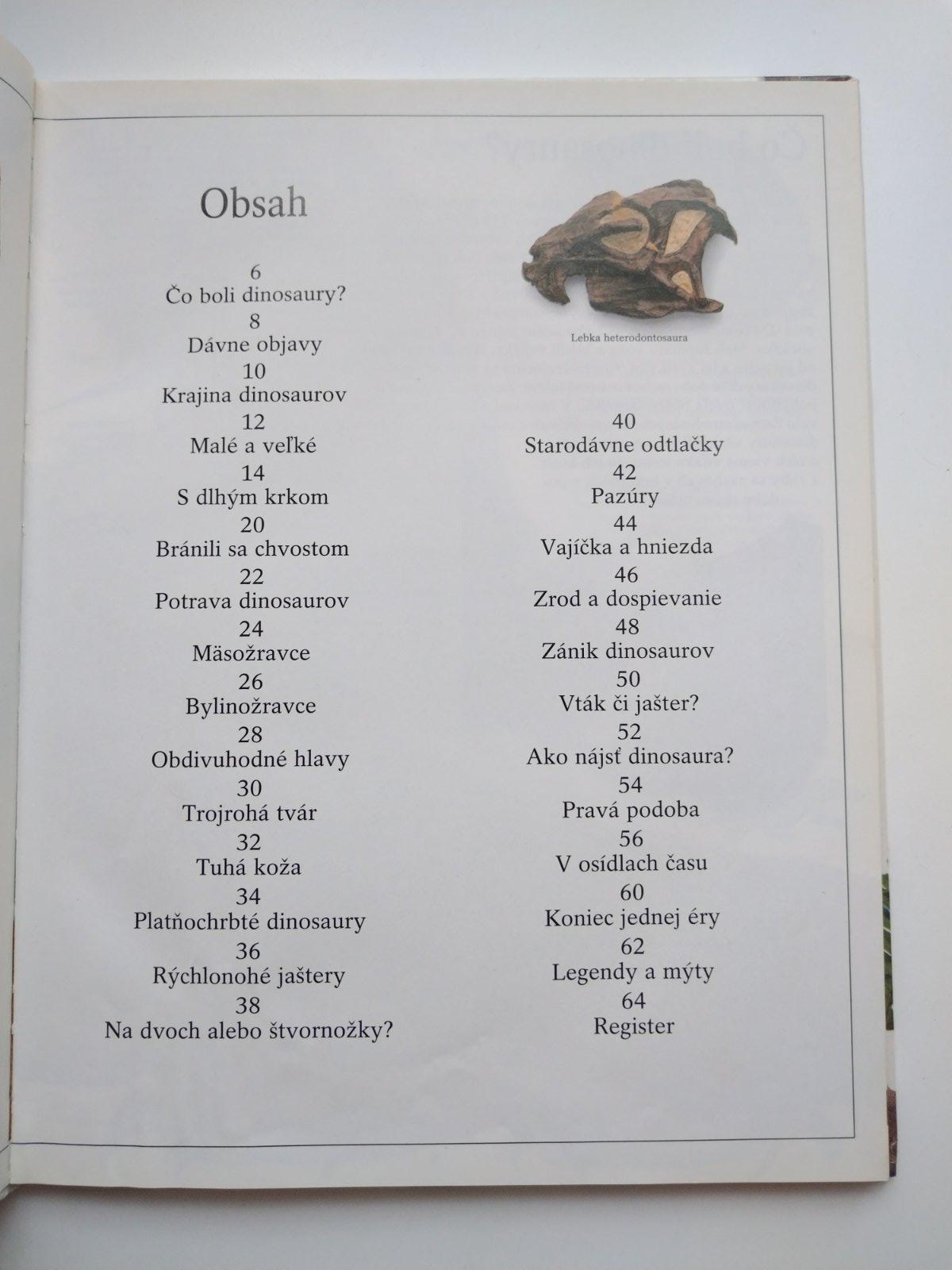 Kniha ponúka fascinujúce pohľady na život dinosaurov prostredníctvom fotografií fosílií, kostier a modelov. Rozoberá ich vývoj, spôsob obživy a teórie o ich vyhynutí.