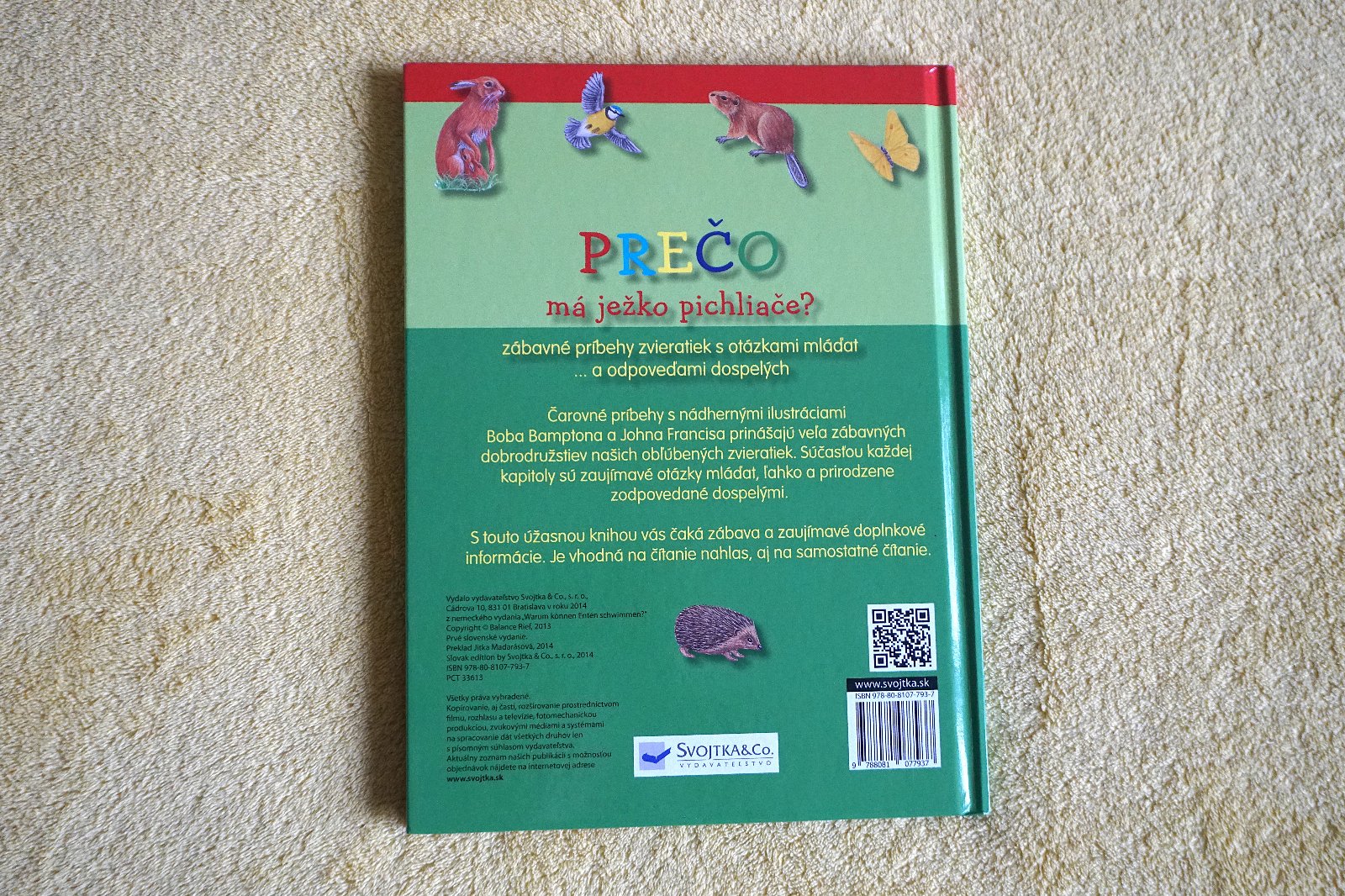 Kniha PREČO má ježko pichliače má formát cca A4. Je bez poškodení, ako nová. 60 strán.