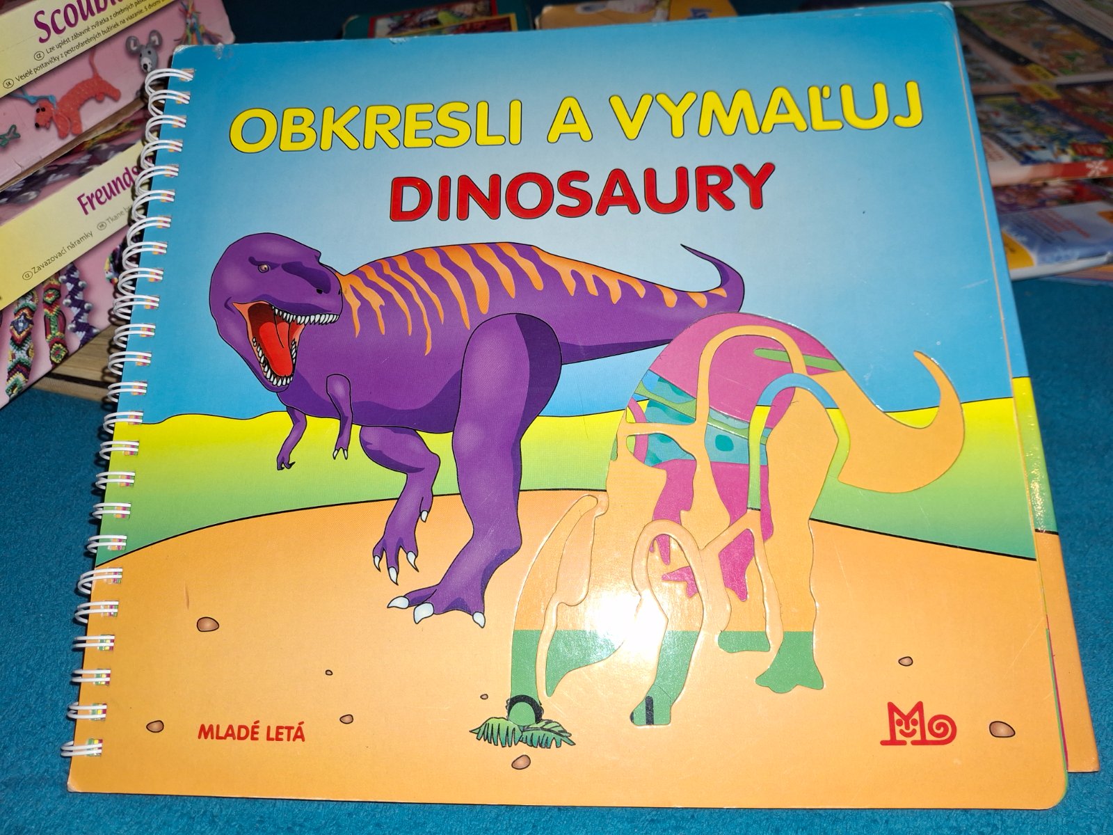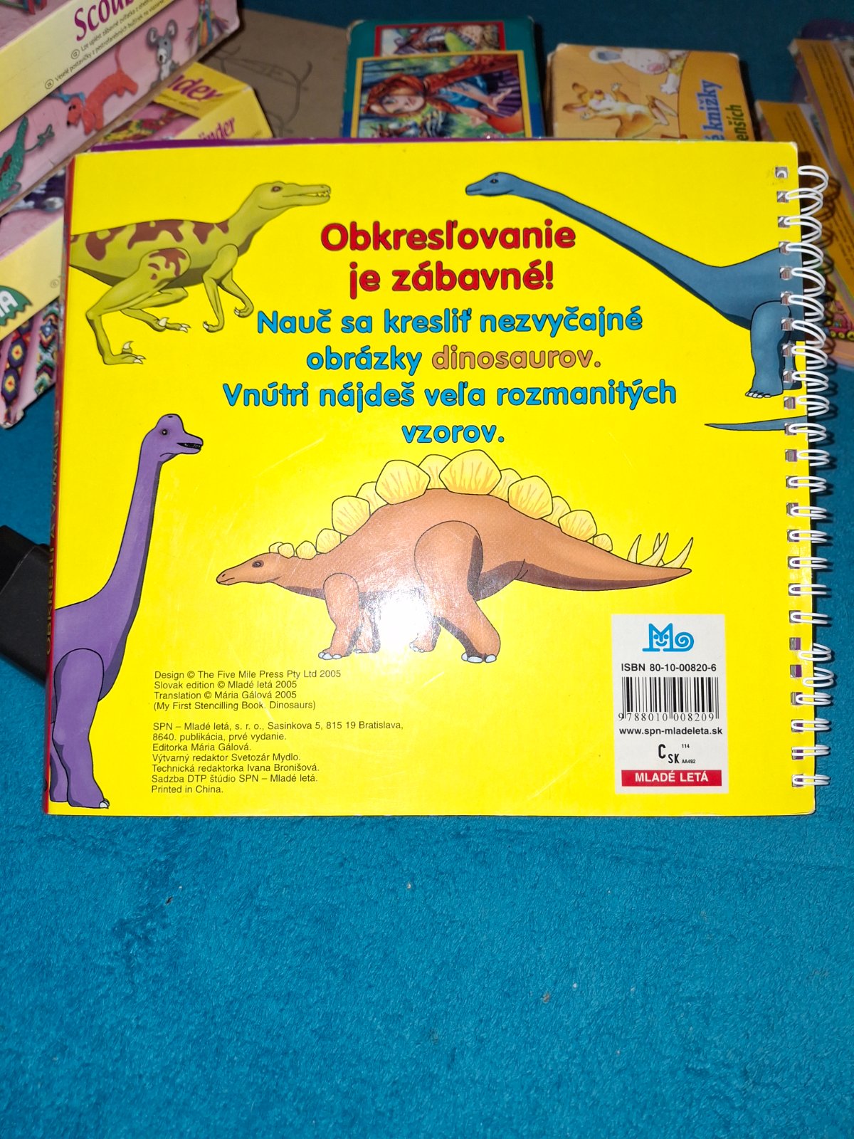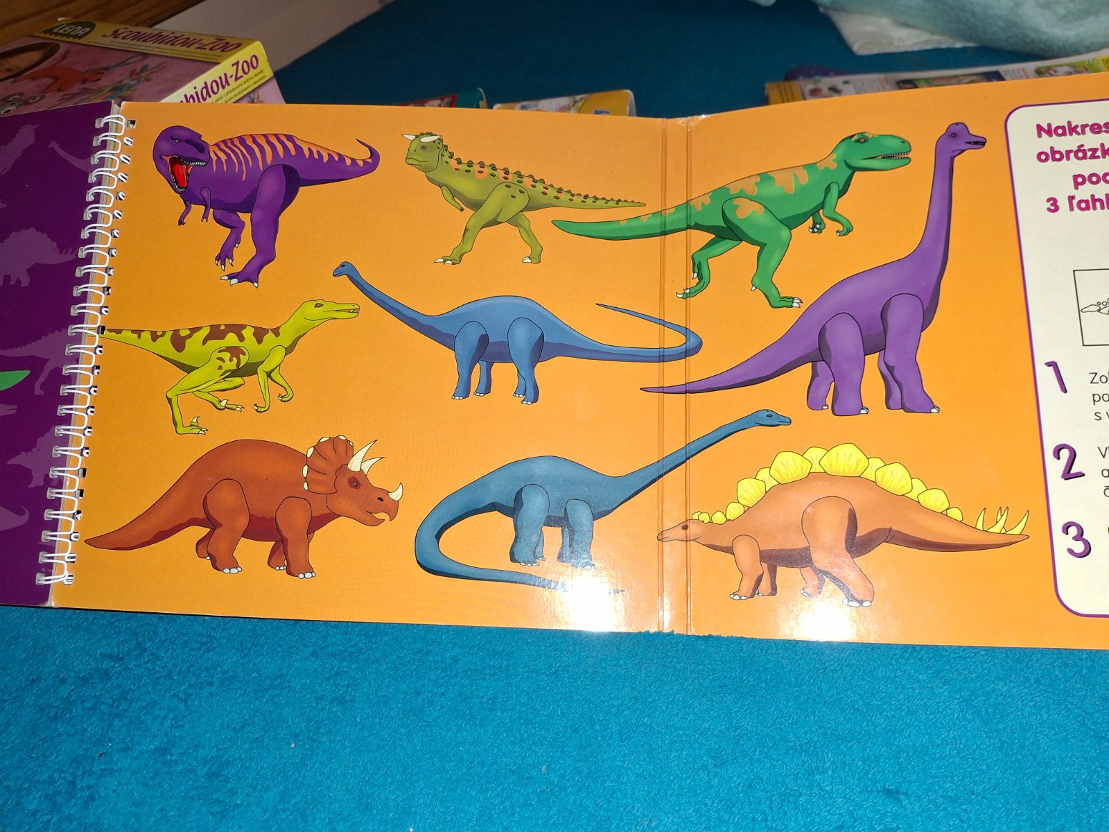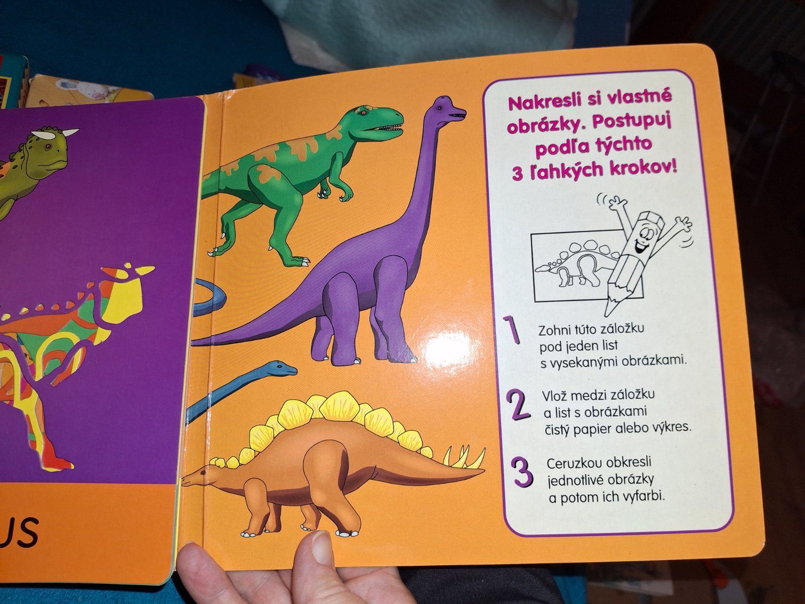 Knižka či kvázi pomôcka na maľovanie...šablóny pomocou si každý naďalej toho svojho dňa a z knihy sa dozvie aký bol veľký a kde žil a nejakú zaujímavosť o ňom.