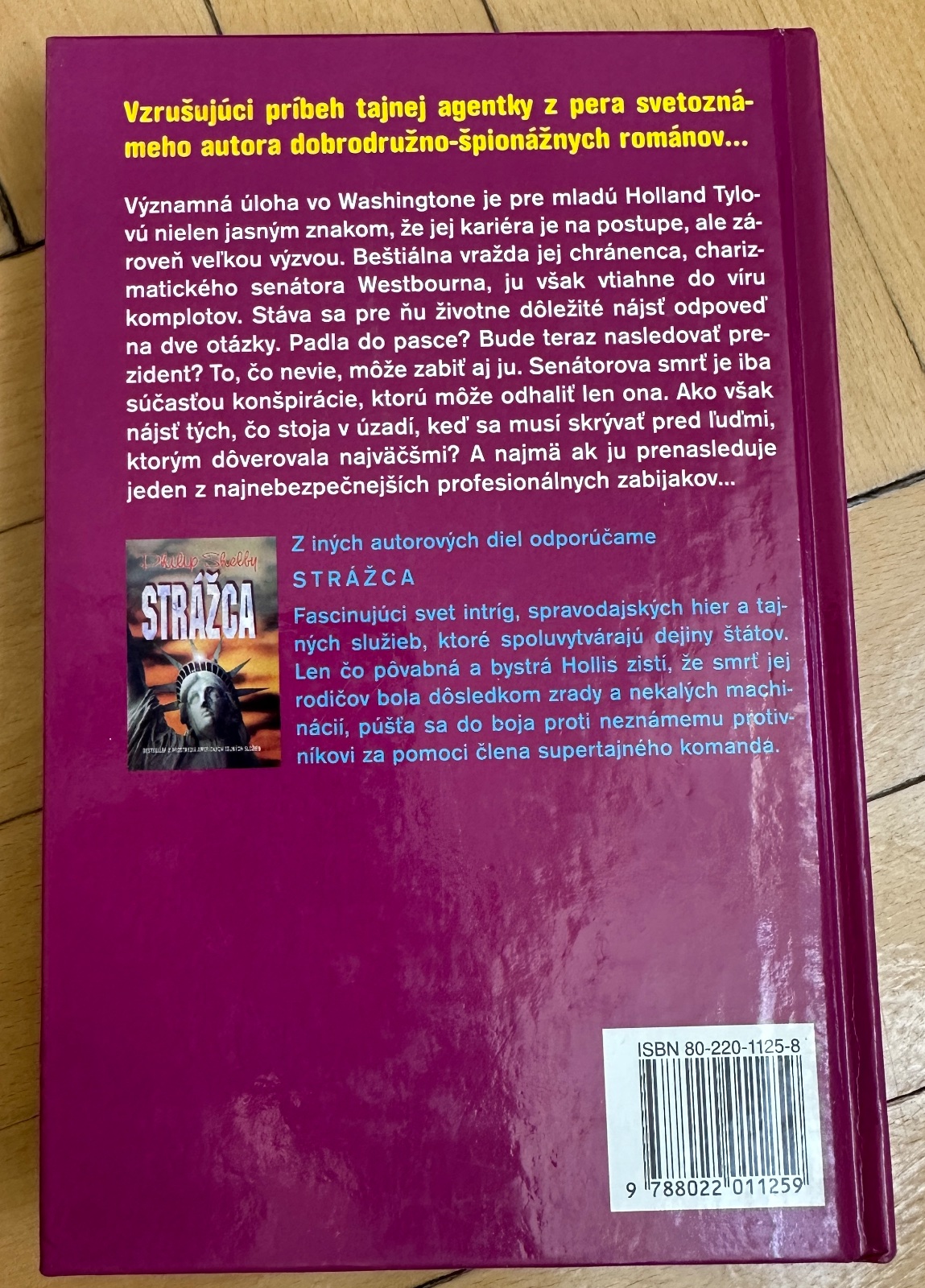 ❤️☘️Kniha citana, stav ako nova, mozete dat kludne niekomu aj ako darcek, bez vad a chyb.Vzrušujúci príbeh tajnej agentky z pera svetoznámeho autora dobrodružno-špionážnych románov... Významná úloha vo Washingtone je pre mladú Holland Tylovú nielen jasným znakom, že jej kariéra je na vzostupe, ale zároveň veľkou výzvou. Beštiálna vražda jej chránenca, charizmatického senátora Westbbourna, ju však vtiahne do víru komplotov...