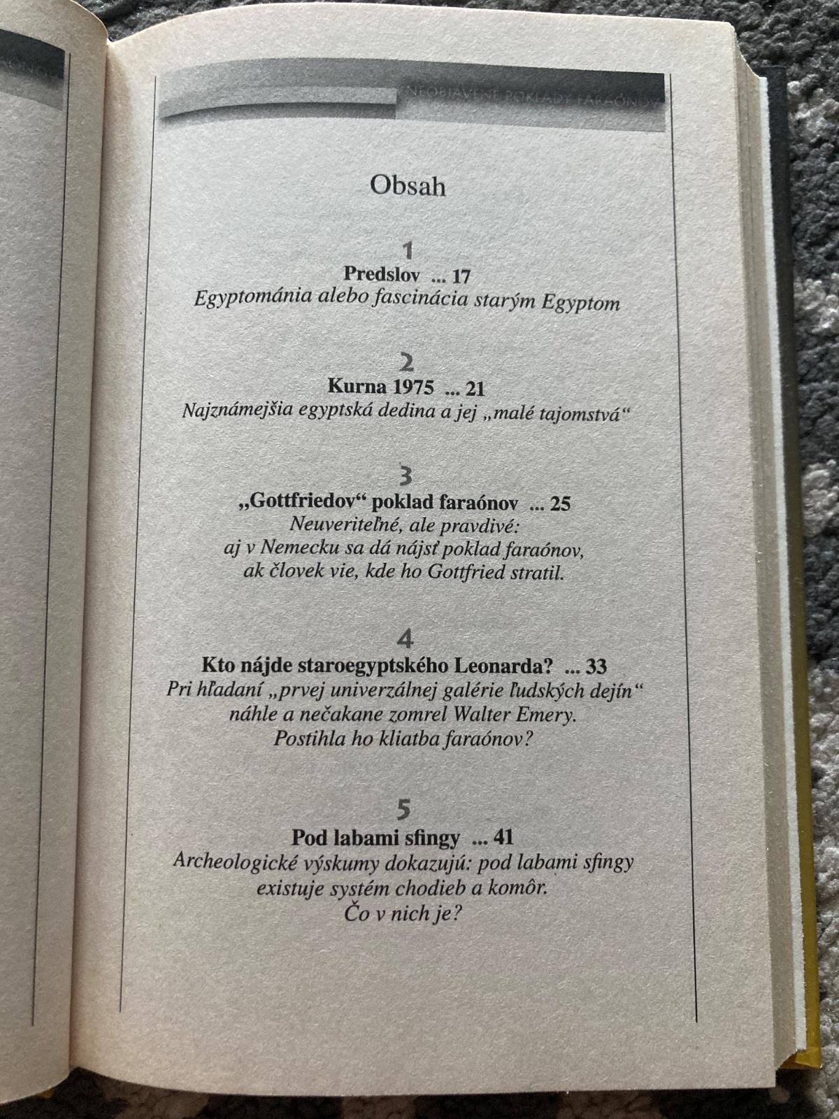 📌 Nájdete v nej pútavé príbehy o bájnych pokladoch faraónov, ukrytých dodnes pod zemou, poteší záujemcov o staroegyptskú históriu, amatérskych hľadačov pokladov ako aj milovníkov antických záhad, slovom všetkých, čo túžia po troške dobrodružstva a zábavy. Táto kniha je návod na nájdenie neobjavených pokladov starých faraónov! Veď jackpot vo forme Tutanchamonovho pokladu sa možno nájde už zajtra...