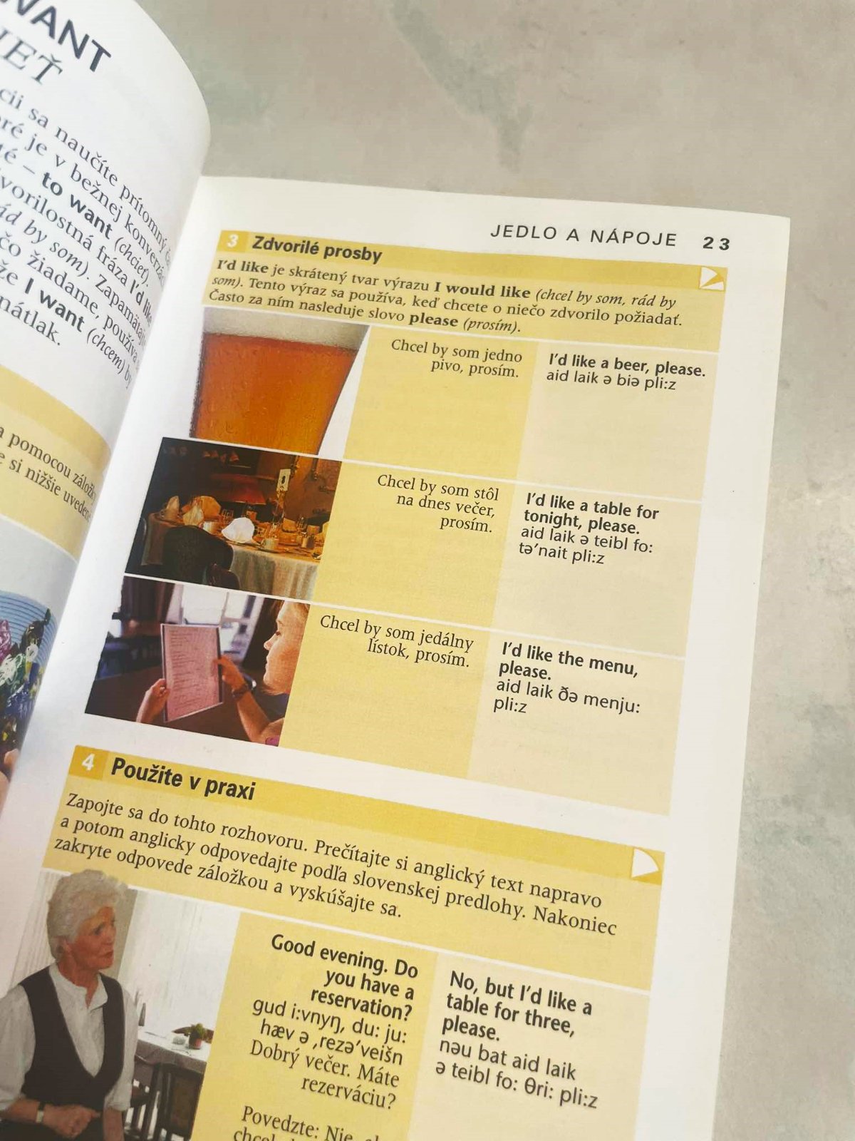 Nové slovíčka a frázy hravo zvládnete aj vďaka uvedenej výslovnosti a názorným obrázkom.