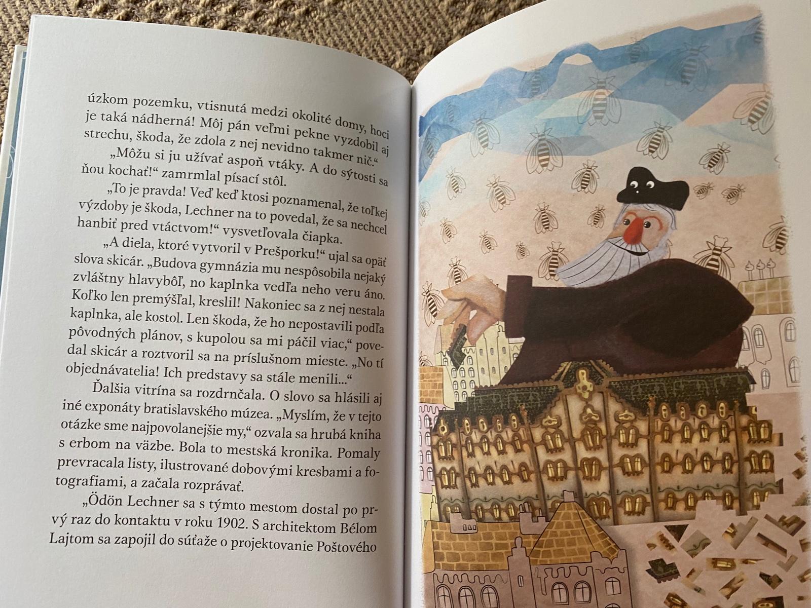Čo robia tri tehly v jednej z vitrín bratislavského múzea? Čo sa skrýva pod tajomným slovom secesia? Kde sa týči nádherná budova Poštovej sporiteľne, zdobená včelami a úľmi? Akú farbu má pancier zlatoňa? Ako môžu mať dve Alžbety jeden kostol - navyše modrý? A kto je majster Lechner, ktorý mal striebornú bradu, v zime i v lete nosil čiapku a staval parádne domy, čo dodnes vzbudzujú obdiv?