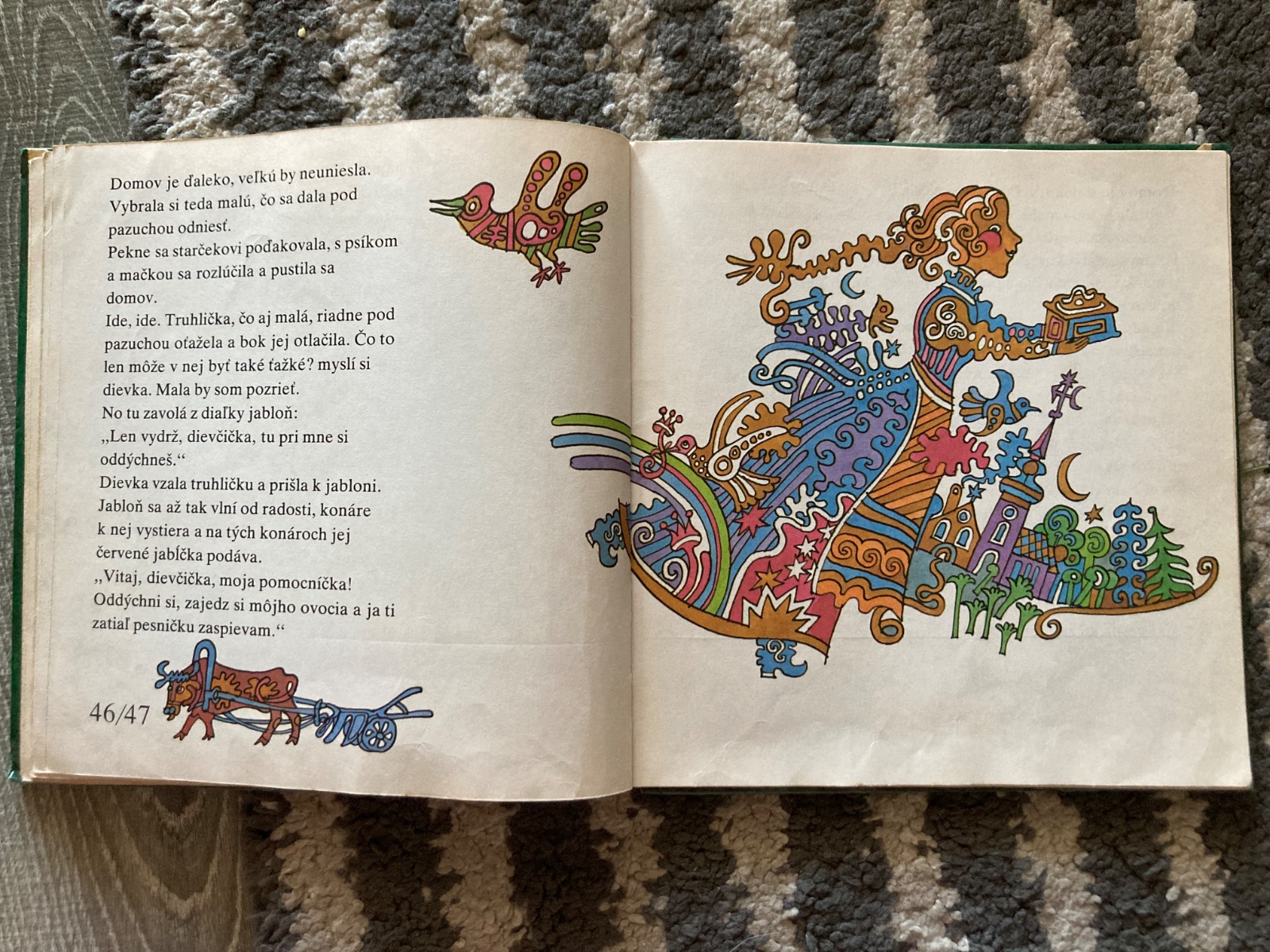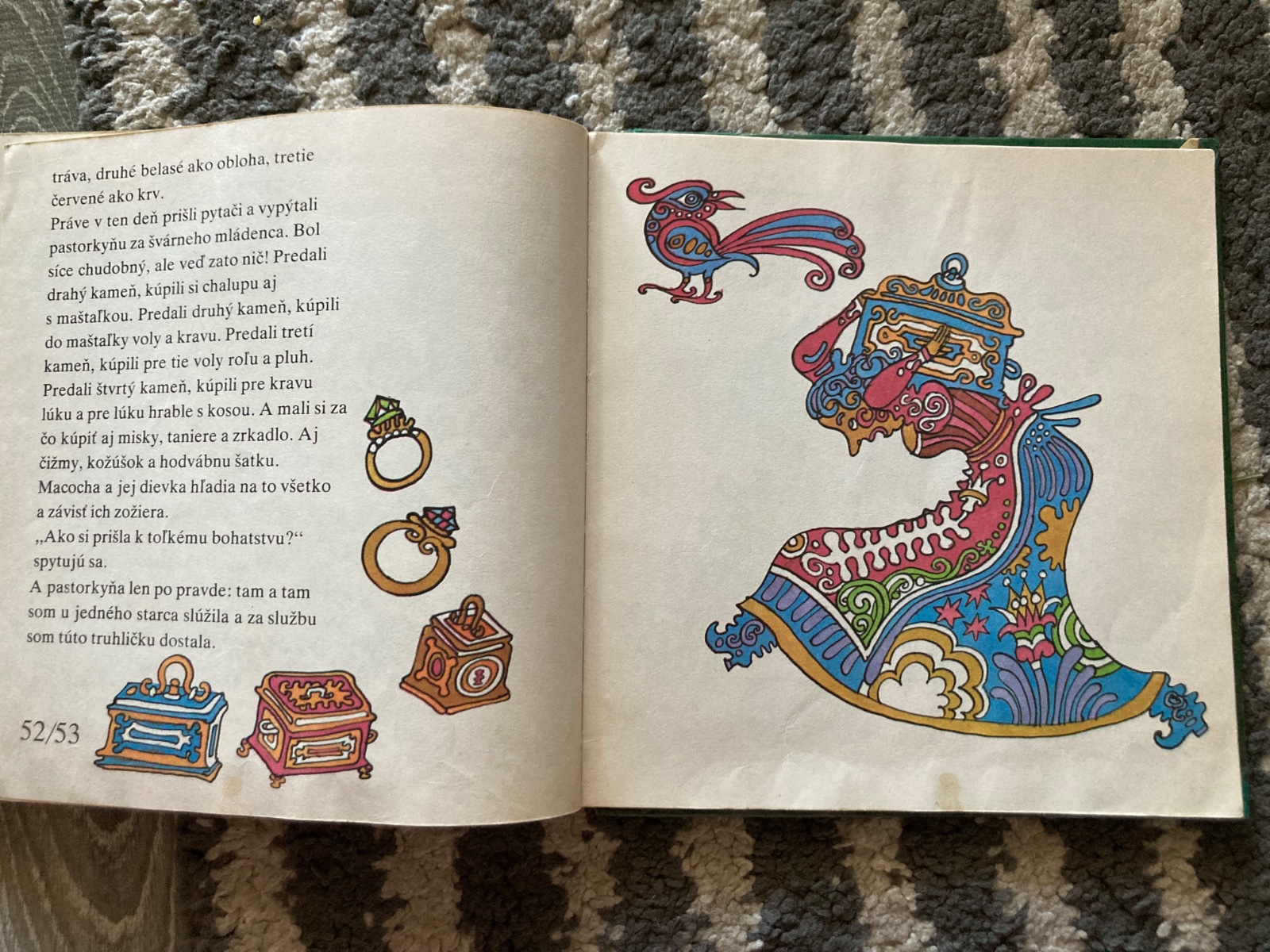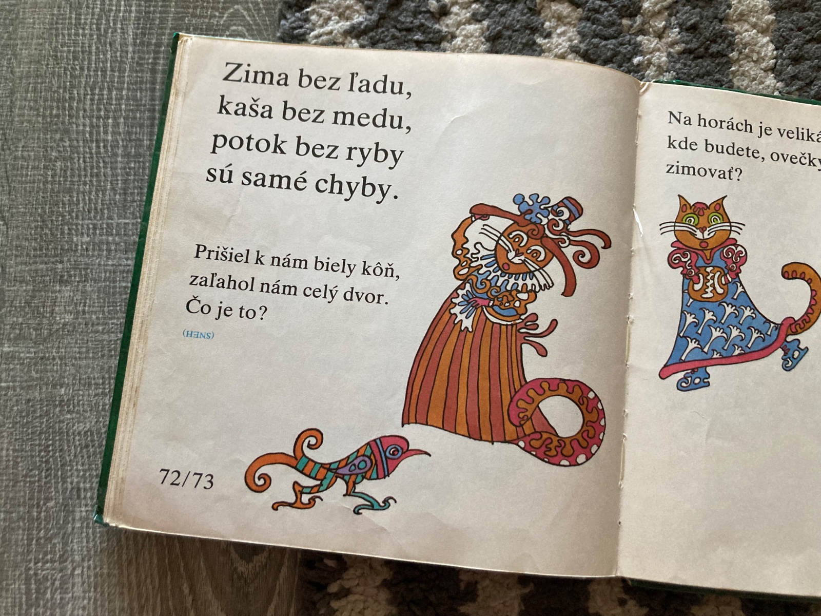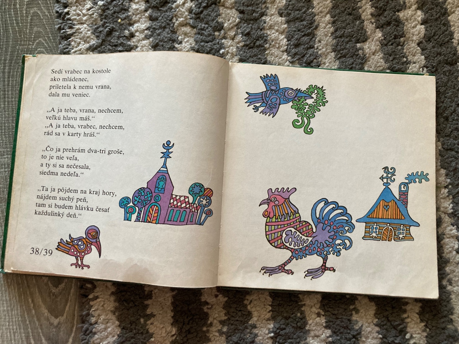Pekný stav, krásna retro knižka, prvé vydanie, s krásnymi ilustraciami, na stranách sú fliačky, má pár pečiatok knižnice a natrhnutý, chýbajúci a zalepený chrbát väzby.