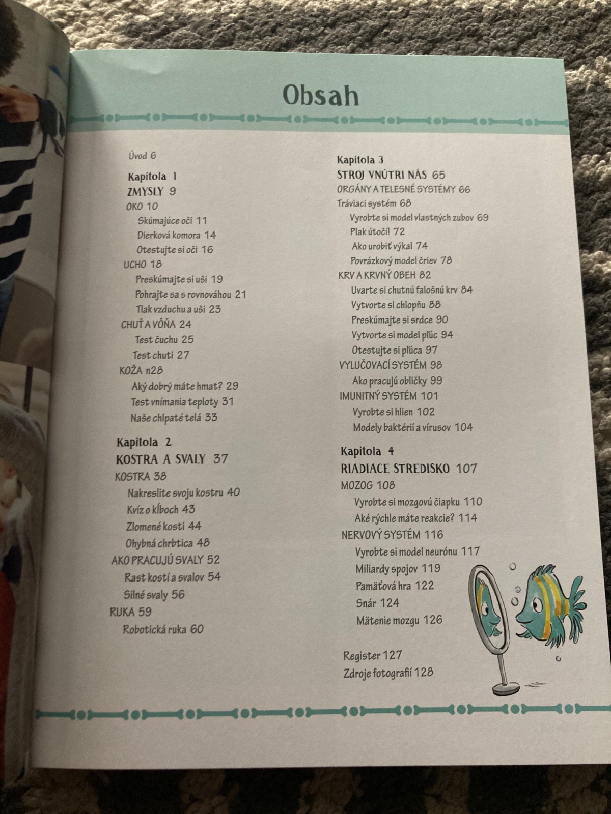 📌 V štyroch tematicky rozdelených kapitolách sa pomocou farebných schém, zaujímavých informácií, úžasných faktov a praktických pokusov zoznámite so svojím telom. Kniha prináša úžasné fakty a veľa typov, ako zostať fit, udržať si zdravie i dobrú náladu!