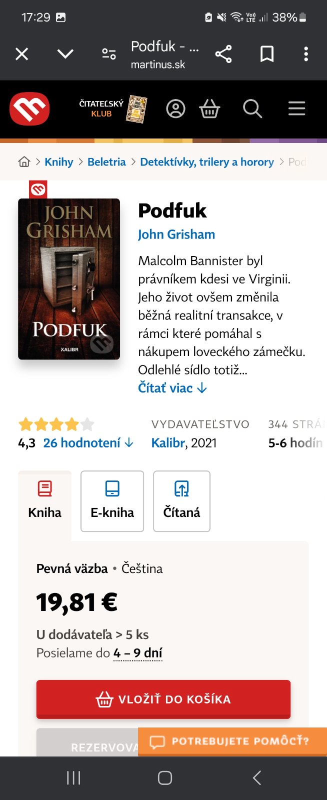 Ponúkam na predaj v top stave knihy John grisham: KLIENT, PRIZNANIE, FIRMA (KUS ZA 4eurá)., Ponúkam aj Odplata za 9eur. (+poštovné prevodom