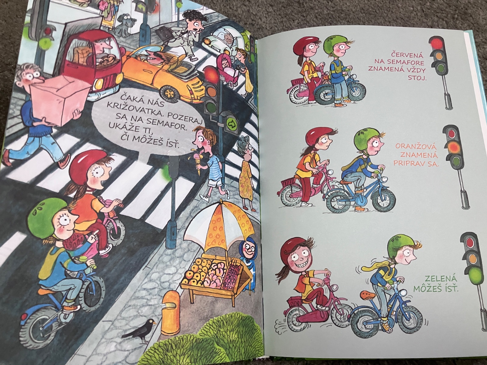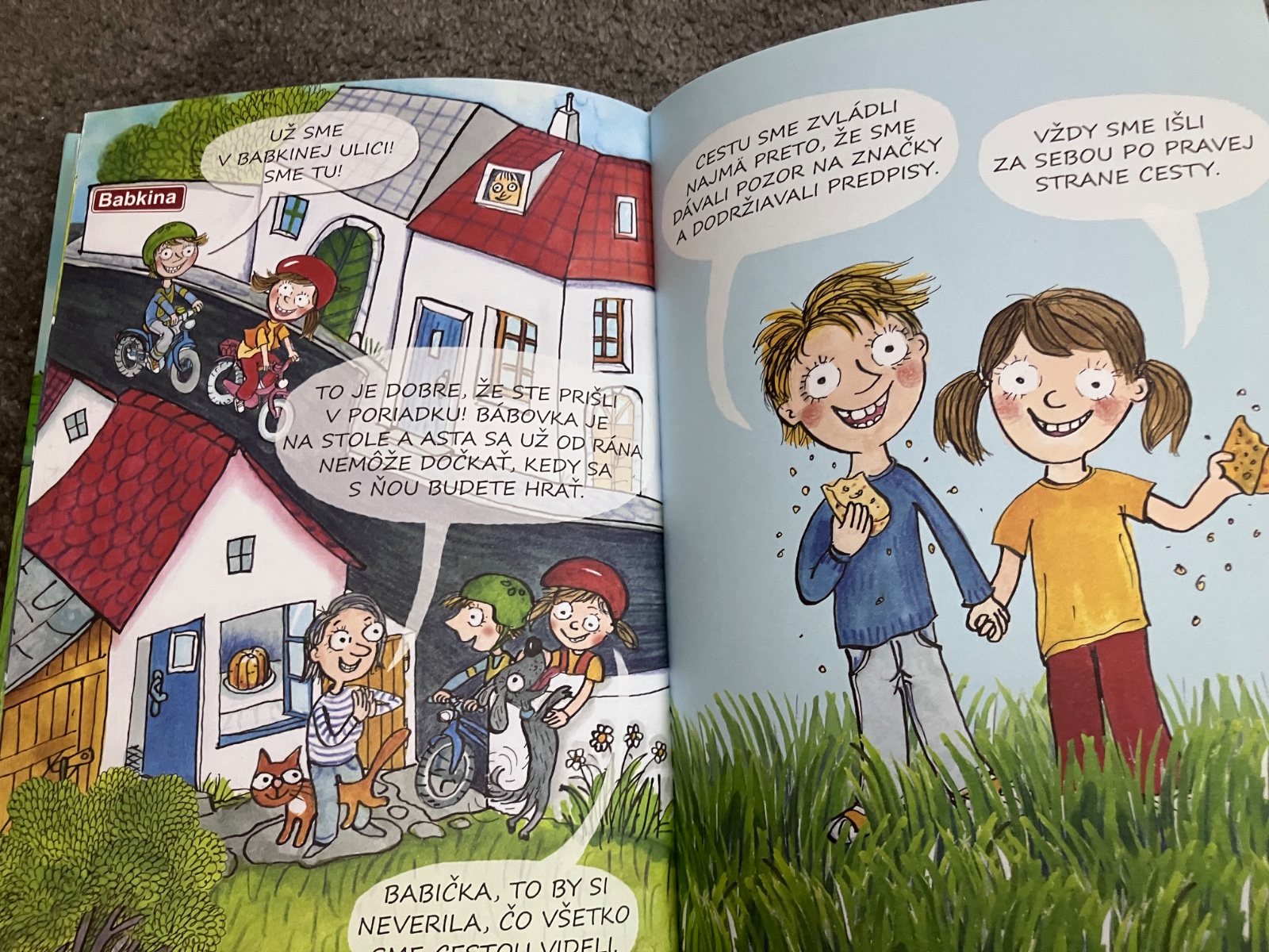 Spoločne s Martinkom a Adelkou sa vydajú na výlet za babičkou. Cestou sa dostanú do rôznych dopravných situácií a zábavnou formou sa naučia bezpečne pohybovať a tiež poznávať najdôležitejšie značky. Knihu dopĺňajú veselé obrázky Aleny Schulz, súčasťou je dopravný kvíz a ďalšie zábavné aktivity.”