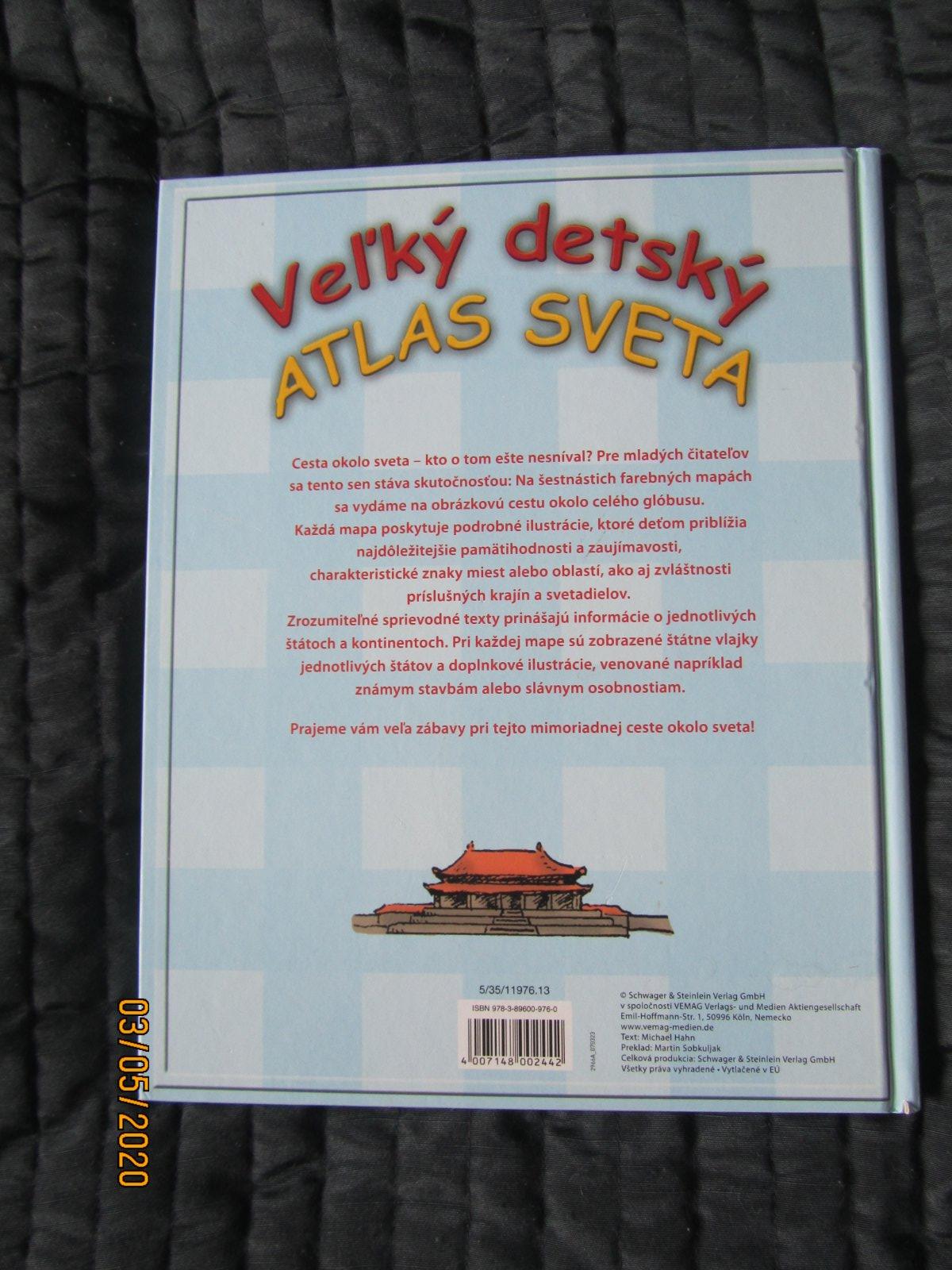 ponukam Velky detsky ATLAS SVETA,pekne ilustrovany poskodenie v dolnej casti na obale.Nafotene