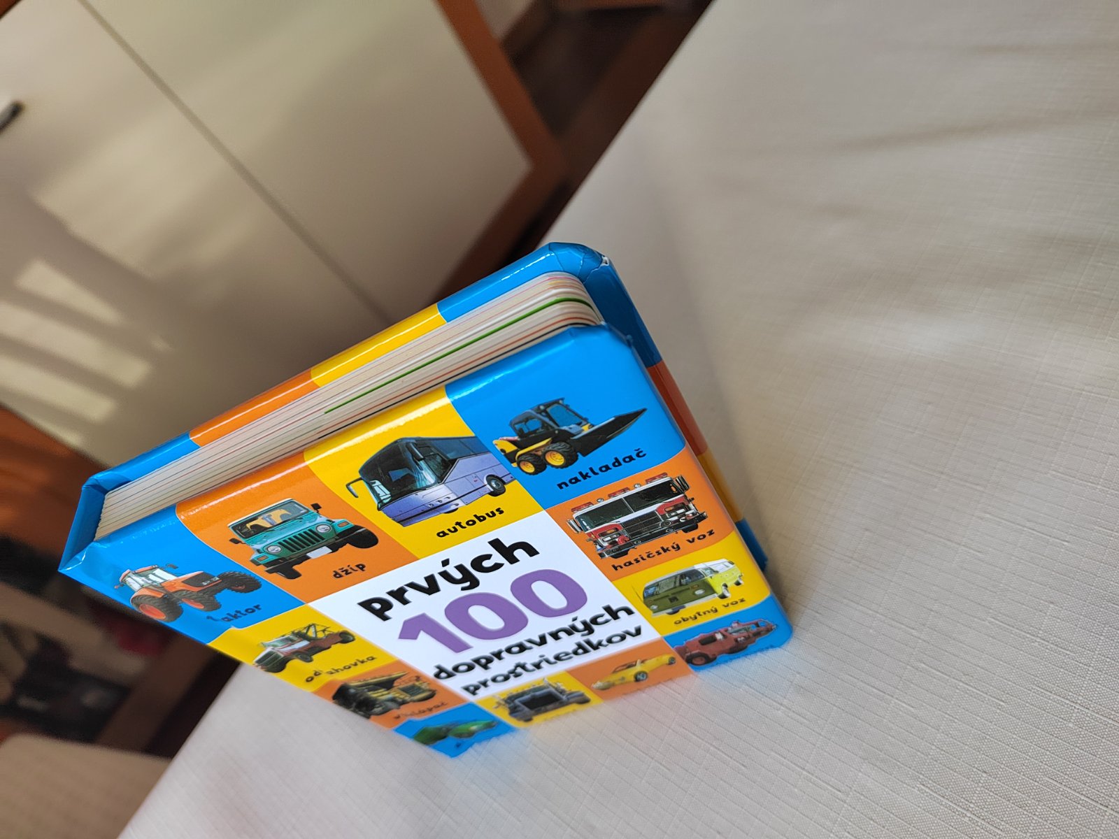 Leporelo s fotografiami a opismi osobných i nákladných áut, vlakov, lodí, lietadiel a ďalších prináša základy slovnej zásoby z oblasti dopravných prostriedkov.