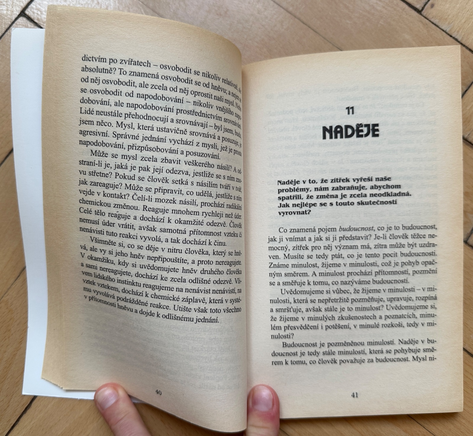 Kniha padesáti přednášek, které formou otázek a odpovědí představují základní filosofická tázání po smyslu bytí. Padesát krátkých přednášek, které přednesl významný hinduistický myslitel, se soustřeďuje na okruh otázek, které se týkají především bytí. Přednášky jsou členěny do čtyř časových cyklů: první okruh se zabývá problémem jáství, druhý a třetí okruh je věnován psychologii lidských vztahů a jejich filosofii, čtvrtý pak otázkám a pojmům jako je soucit, zkaženost, zodpovědnost, víra a modlitba, svoboda. Autor vychází z předpokladu, že život jako takový je celistvý, klást obzvláštní důraz na jednotlivost, trápit se pro detaily, vede k sebezničení. Rovněž veškeré představy Boha, iluze máme různé, avšak model je totožný. Problémy vznikají především ve vztazích s druhými lidmi, mohou však být vyřešeny, nejsme-li pohodlní. Přednášky probíhaly v Anglii a Kalifornii od srpna 1979 do září 1980.