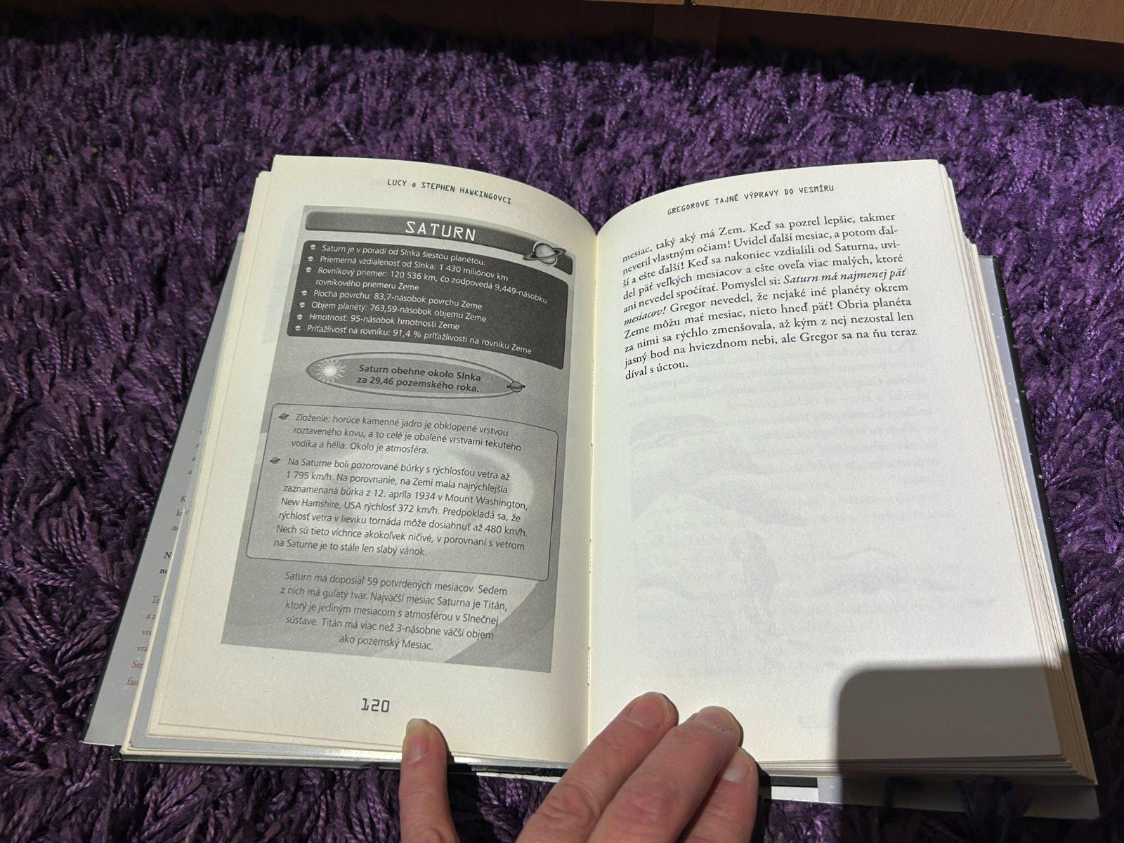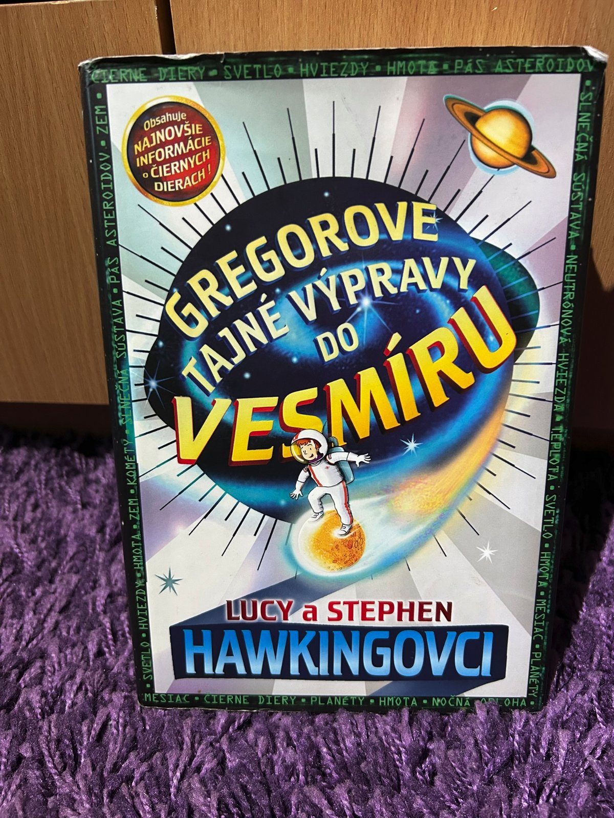 Kniha, ktorú spolu napísali svetoznámy astronóm Stephen Hawking a jeho dcéra Lucy, kombinuje napínavý a zábavný príbeh s množstvom zaujímavých faktov o vesmíre vrátane najnovších poznatkov Stephena Hawkinga o čiernych dierach. Keď Gregor hľadá svoje domáce prasiatko v susednej záhrade, stretne nových susedov Annu a jej otca Erika, ktorý je uznávaný vedec. Otvoria sa mu dvere do celkom nového sveta. Do sveta, kde sa dá na svet pozerať z iného pohľadu – z vesmíru.